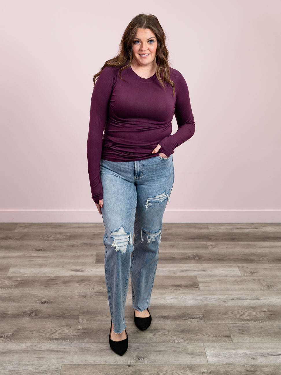 Soft, stretchy, and effortlessly stylish — the Blair Long Sleeve Top features a classic round neck, long sleeves with thumbholes, in a beautiful solid colour. Made from buttery soft fabric that moves with you, it’s perfect for layering or wearing on its own.