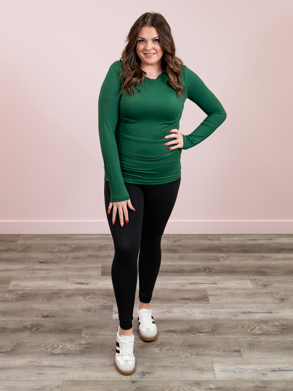 *4PM DEAL* Kenzie Long Sleeve Round Neck Tee | Dark Green
