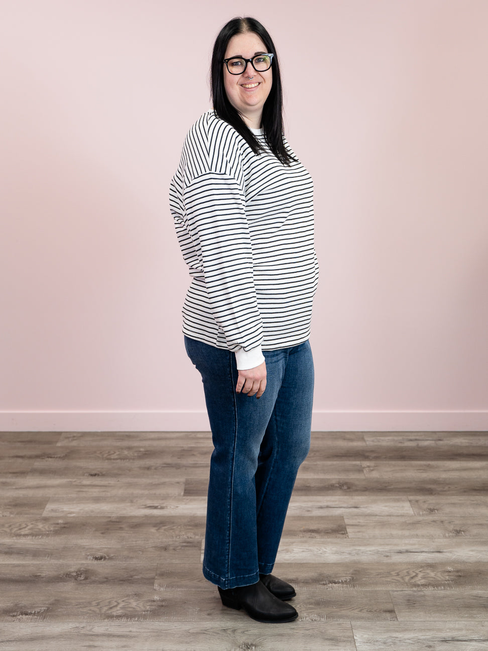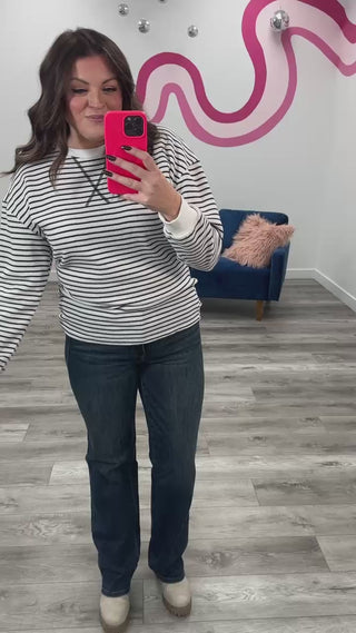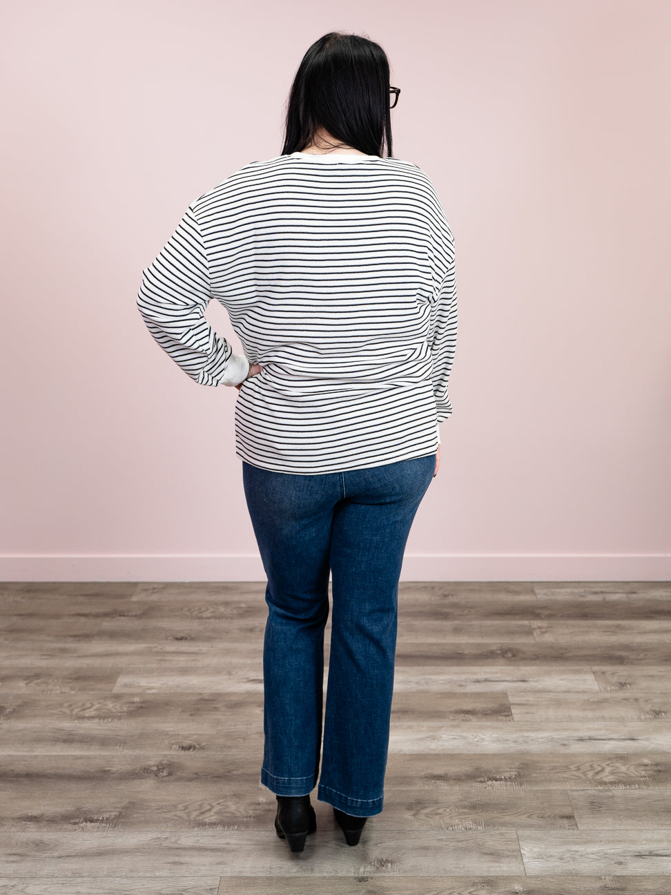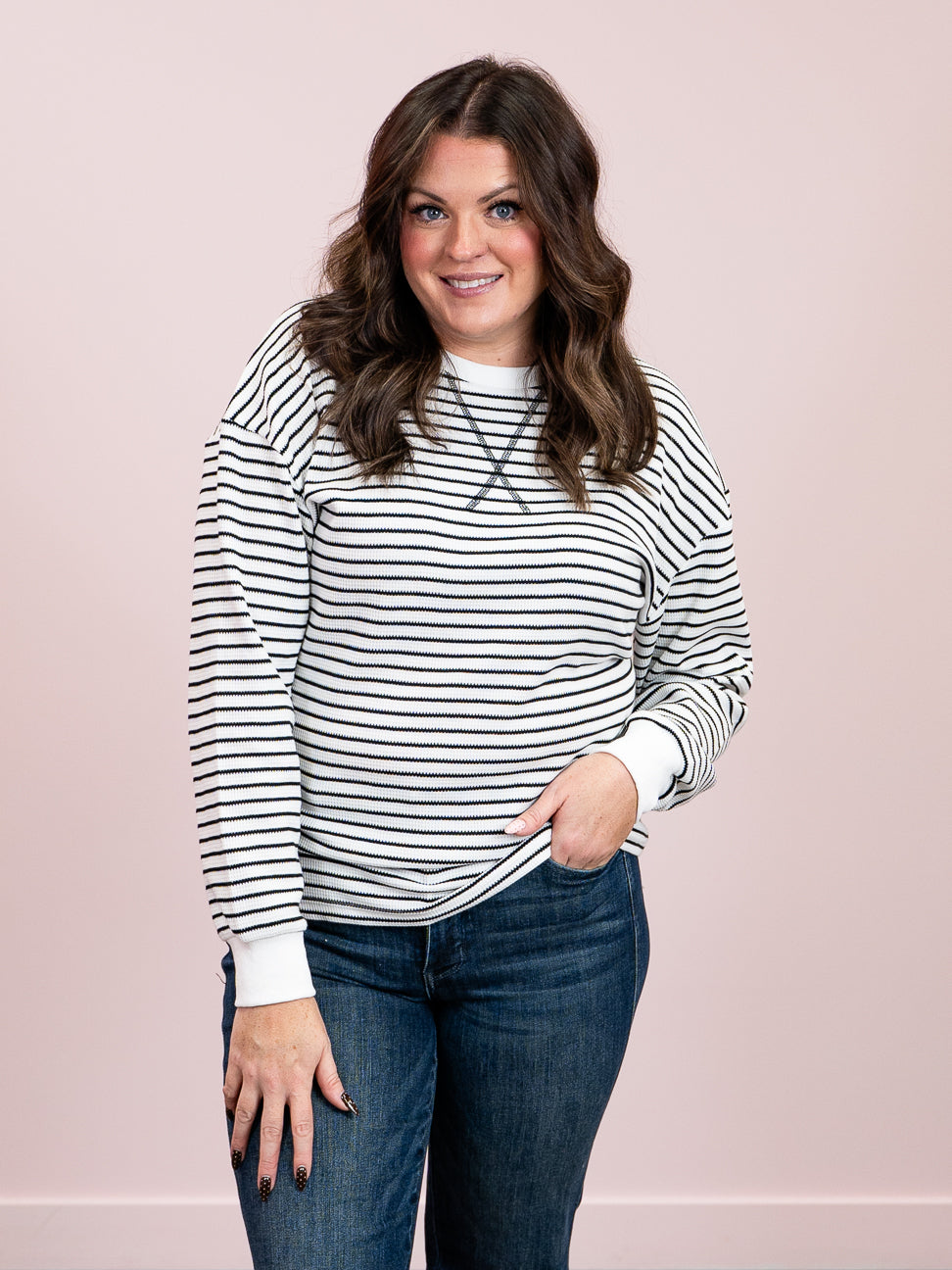 Stay cozy and stylish in the Lola Striped Thermal Top! The stripes add a touch of classic charm, while the thermal fabric keeps you warm. Featuring a relaxed fit and trendy cuff sleeves, this top is a must-have for any fashion-forward individual.
