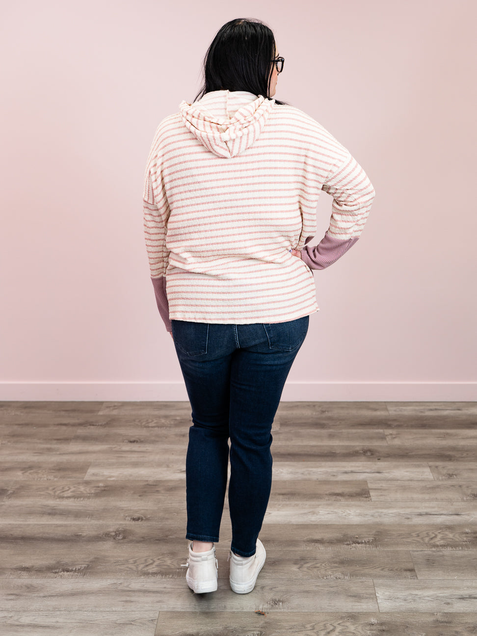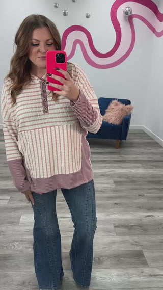 Salina Striped Hoodie | Cream & Mauve
