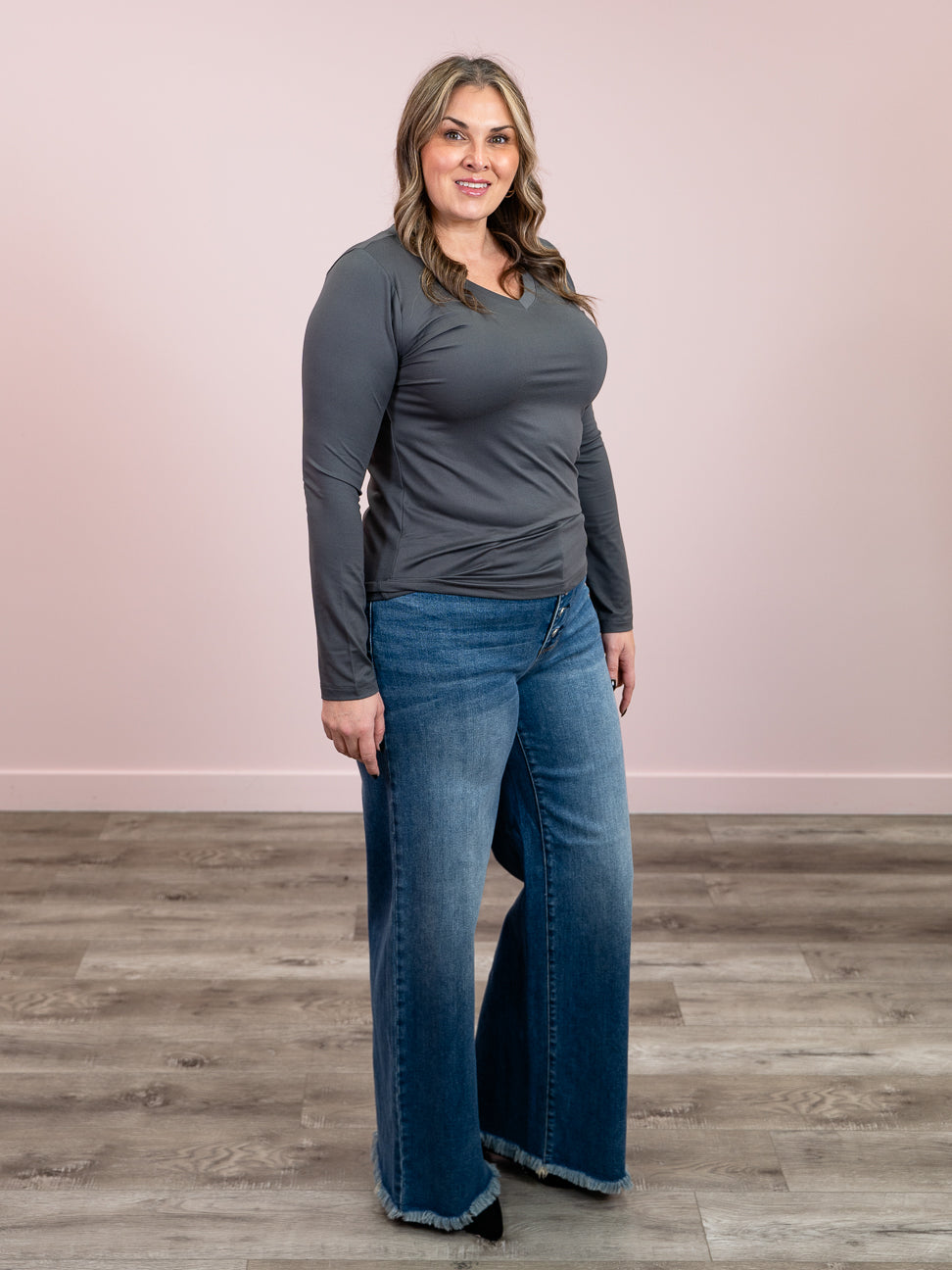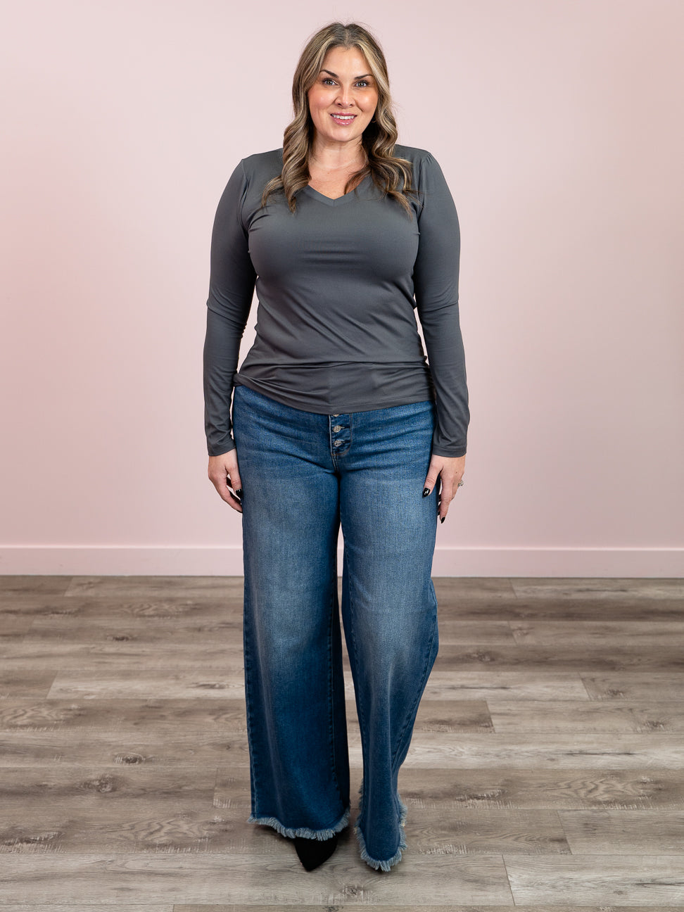 *4PM DEAL* Kimmy Long Sleeve V-Neck Tee | Ash Grey