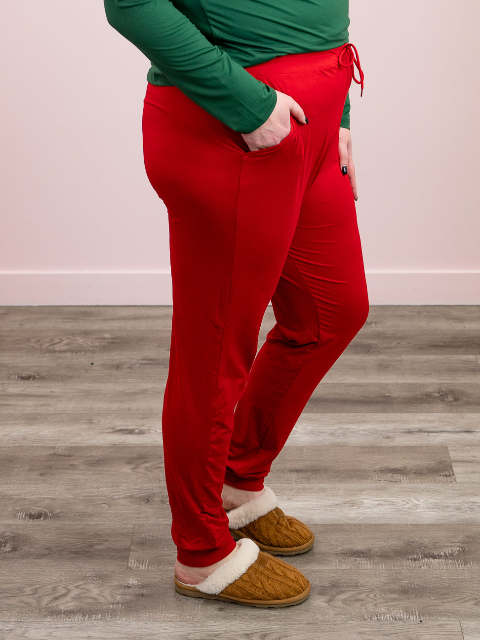 The Lux Joggers are everything you want in a pair of joggers: high rise fit, elastic waist with tie for comfort, functional pockets, and cuffed ankles for a stylish touch. Made with buttery soft and stretchy fabric, these joggers will become your go-to for both style and comfort. Get ready to upgrade your loungewear game!