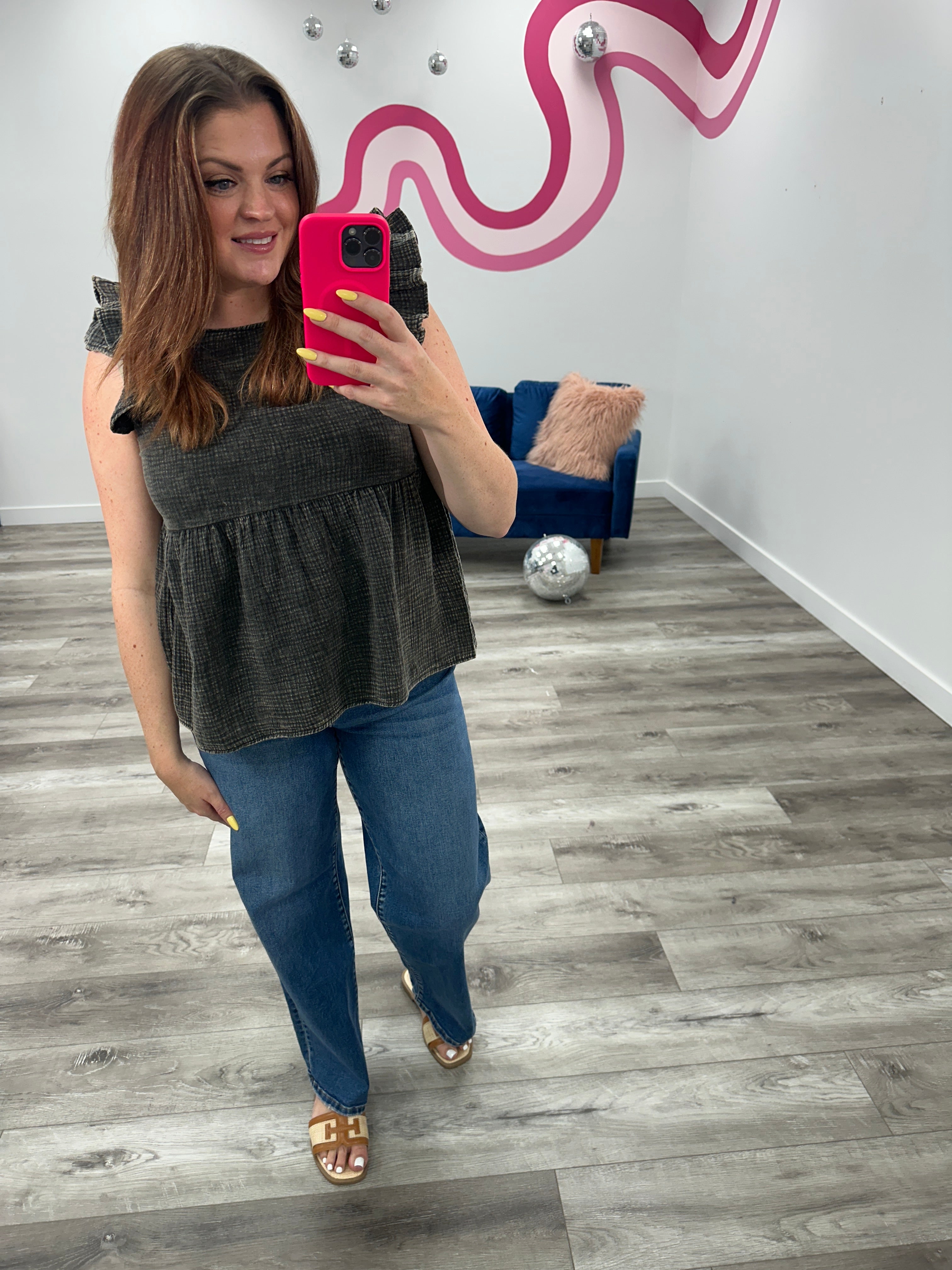 *FINAL SALE* Susie Ruffle Babydoll Top | Ash Black