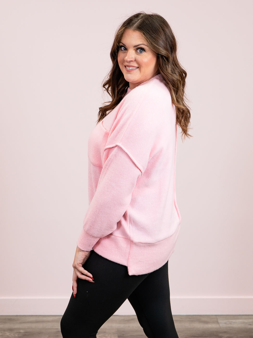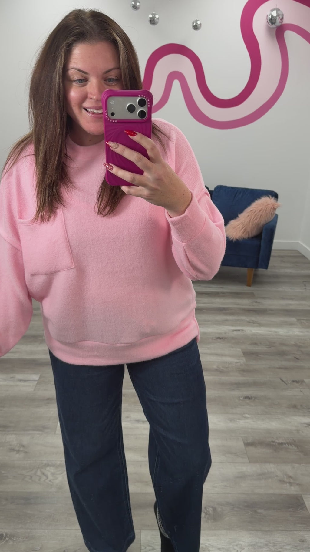 Meet your new sweater obsession—the Keelyn Oversized Sweater in a gorgeous dark pink that's impossible to resist. This brushed melange dream drapes beautifully with a relaxed drop shoulder fit that screams effortless style. Love the little details? We do too—think decorative seam accents running down the sleeves and center back, plus a practical flat chest pocket for your essentials. The hi-low hem adds just enough sass to keep things interesting, while the incredibly soft fabric makes you never want to take it off. Cozy, cute, and totally your new favourite.