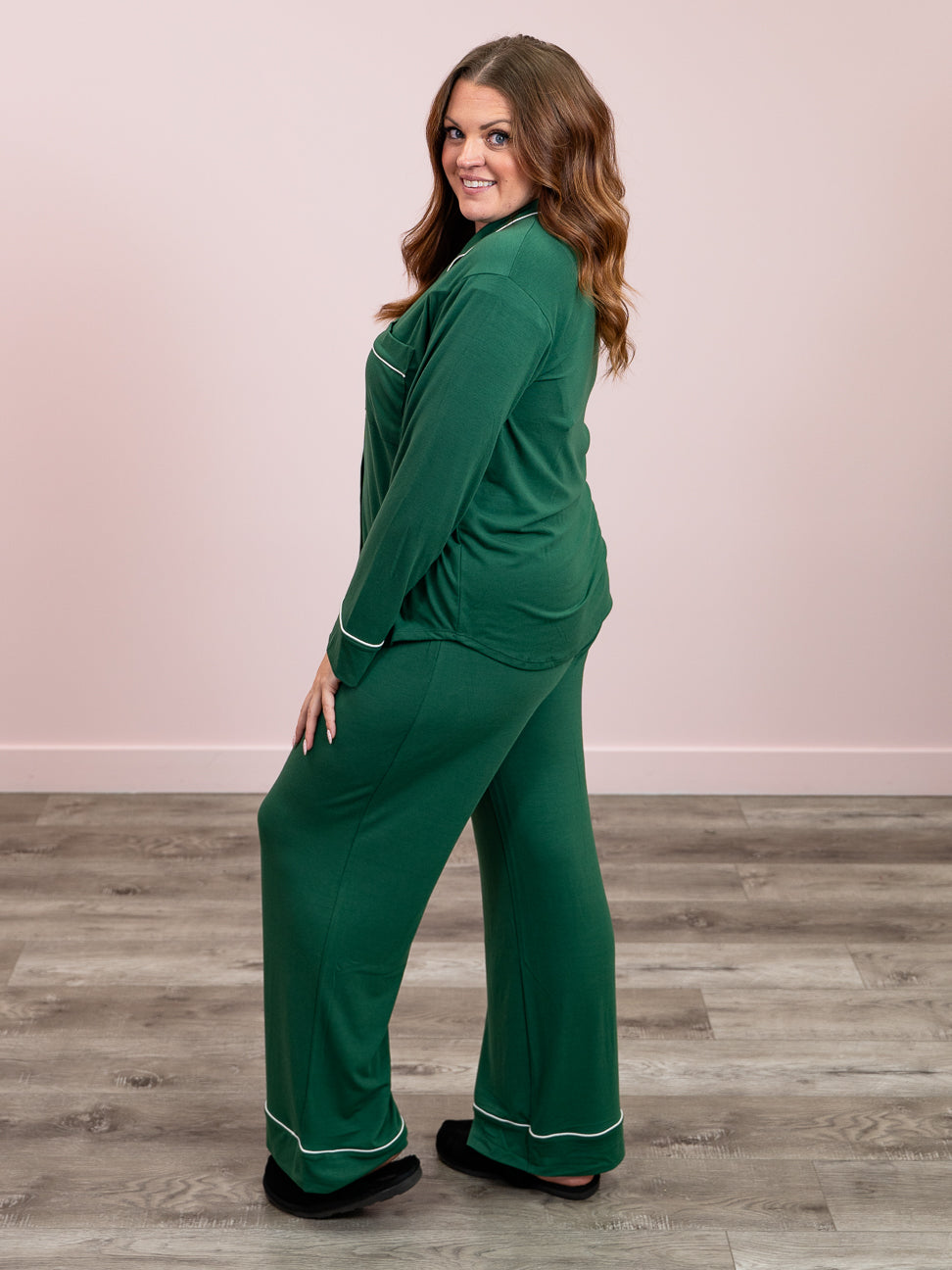 Sweet Dreams Button Down PJ Set | Dark Green – Lavender & Lace Boutique