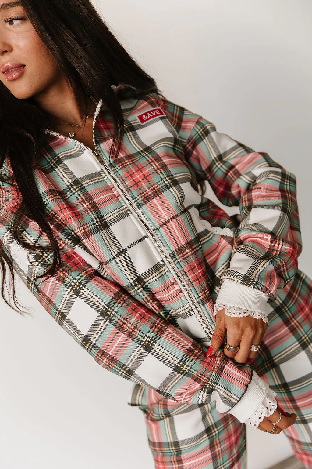 Everything you love about the Comfort Zone Hoodie but now in a FullZip! The perfect plaid with lace accents make this a closet must have!