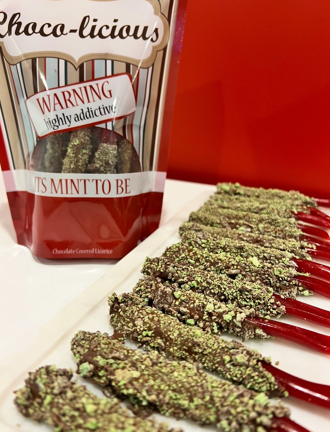 - It’s Mint to Be – Red licorice coated in milk chocolate and infused with mint Aero chocolate.