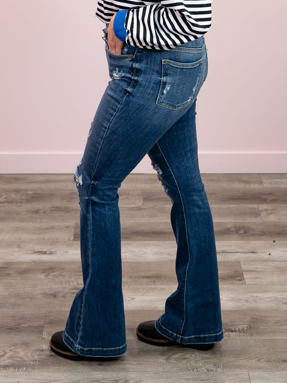 Judy Blue | Midrise Destroyed Button Fly Trouser Flare | Sheldon