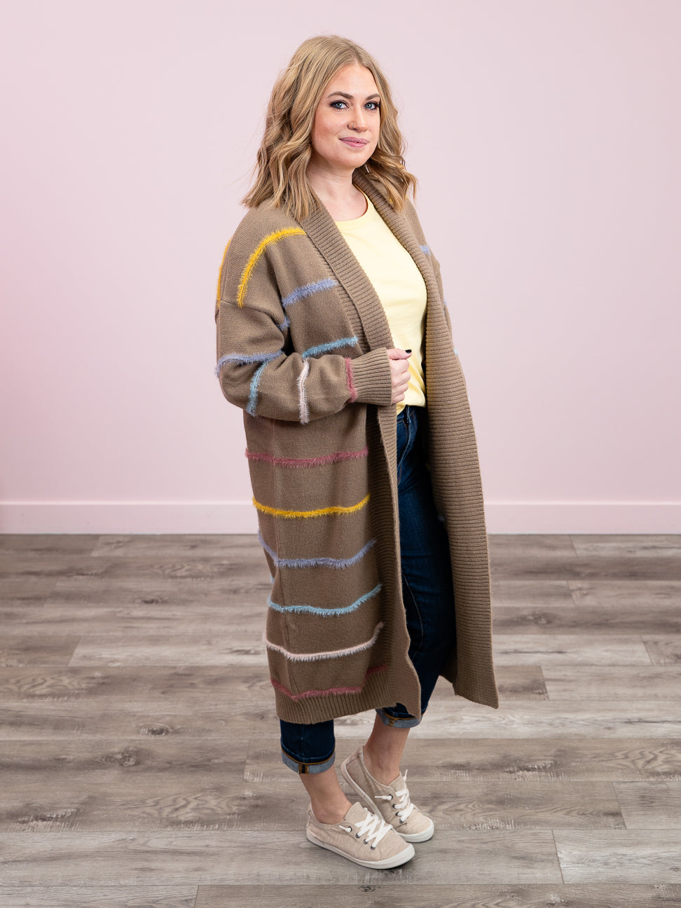 *NEW* Hug & Glow Striped Long Cardigan | Light Mocha Mix