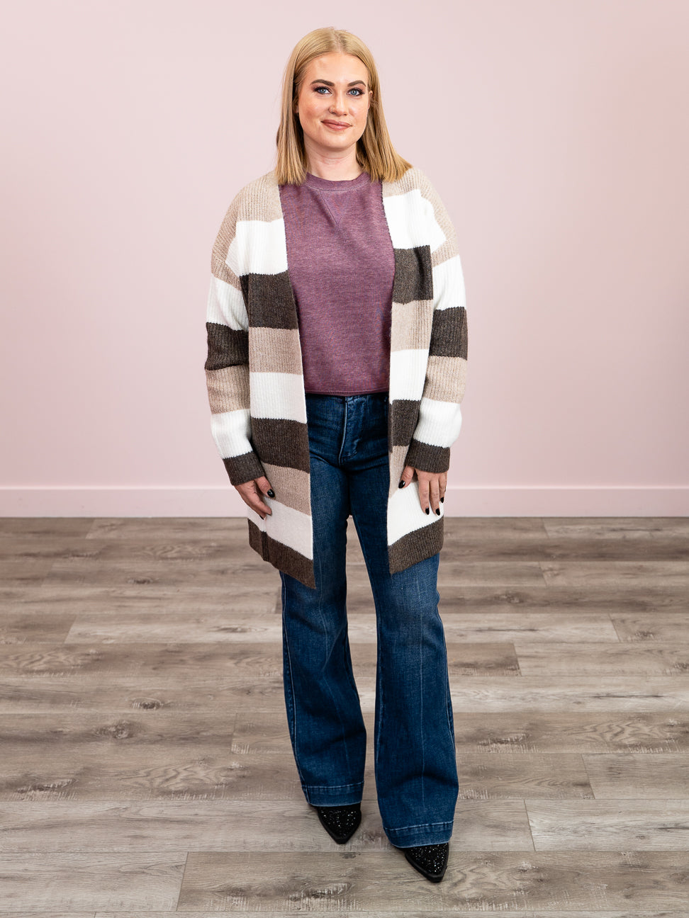Raelynn Colorblock Cardigan | Beige & Chocolate