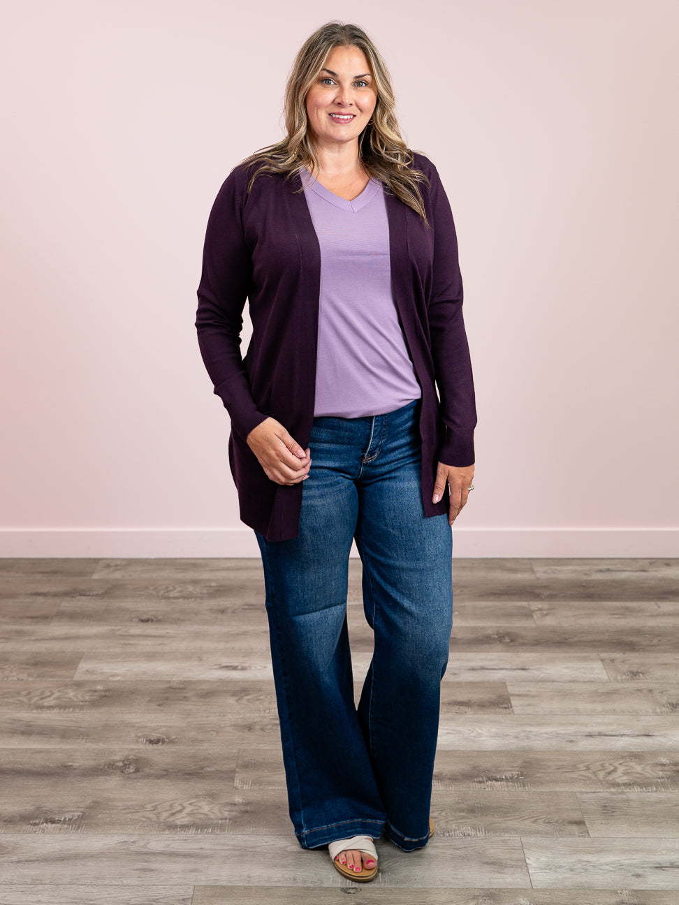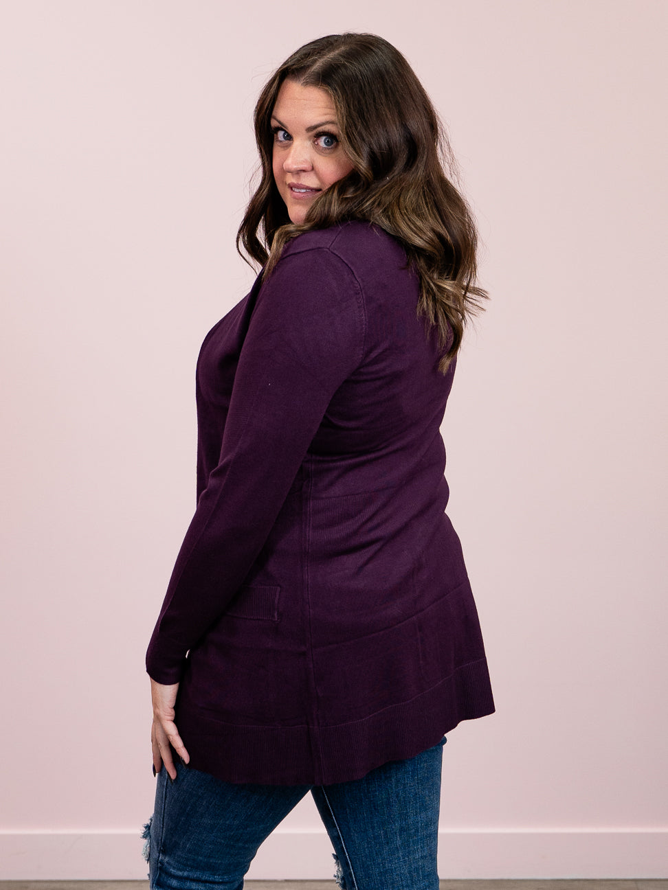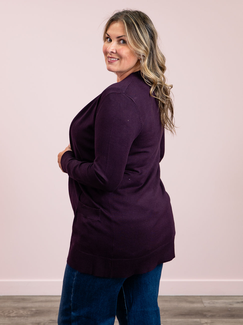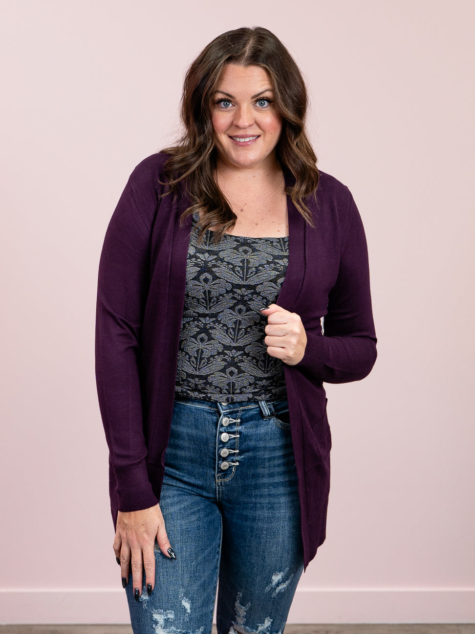 The Key Cardi is your new go-to for effortless style and comfort. This long, open-front cardigan features cozy pockets and charming rib knit trim. Soft and stretchy, it moves with you while adding a playful pop of colour to any outfit.