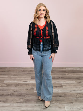 *NEW* DEX | River Embroidered Button Front Shirt | Medium Blue Wash & White Petal