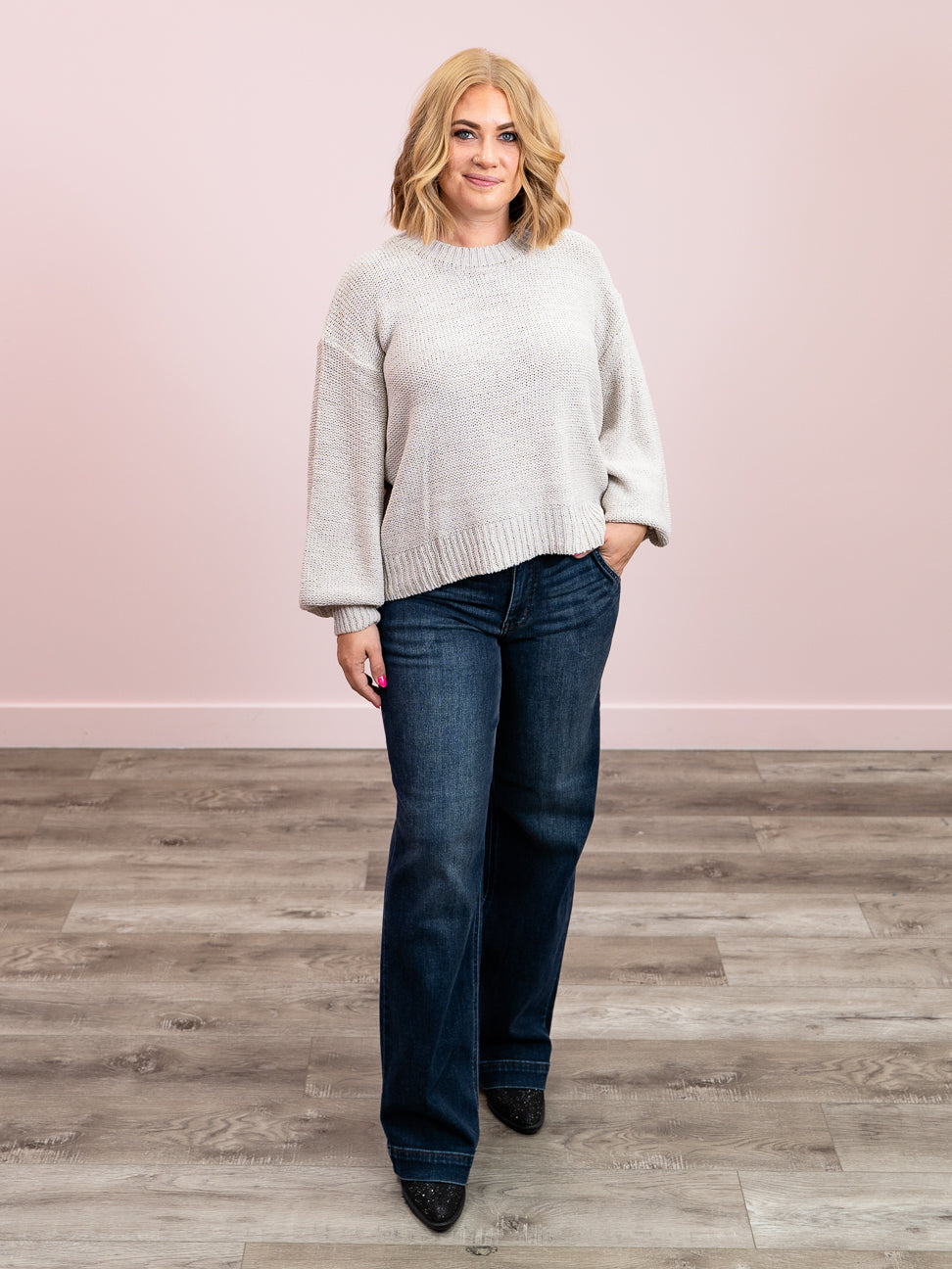 Cozy up in the Autumn Drift Sweater, where balloon sleeves meet a relaxed fit for ultimate comfort. The crew neck and dropped shoulders add a casual vibe, while rib knit trim keeps the look polished. Perfect for layering on crisp days, this sweater brings a fun twist to your fall wardrobe.