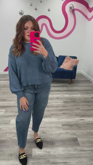 Autumn Drift Oversized Balloon Sleeve Sweater | Dusty Blue