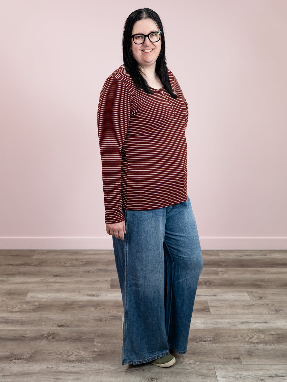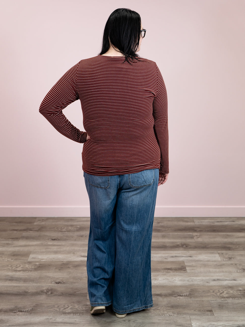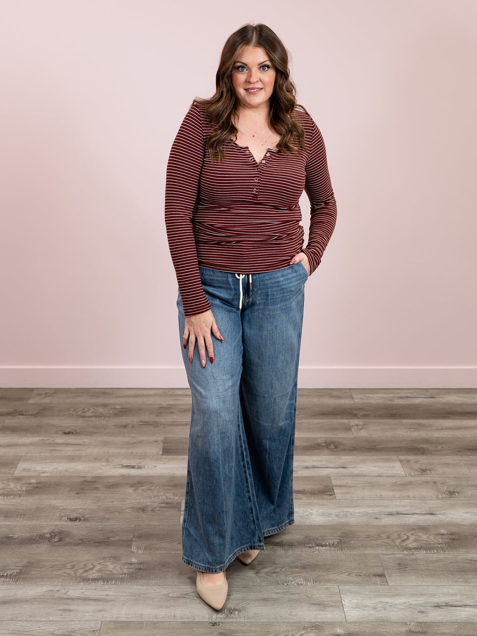 *NEW* Striped Henley Long Sleeve | Burgundy