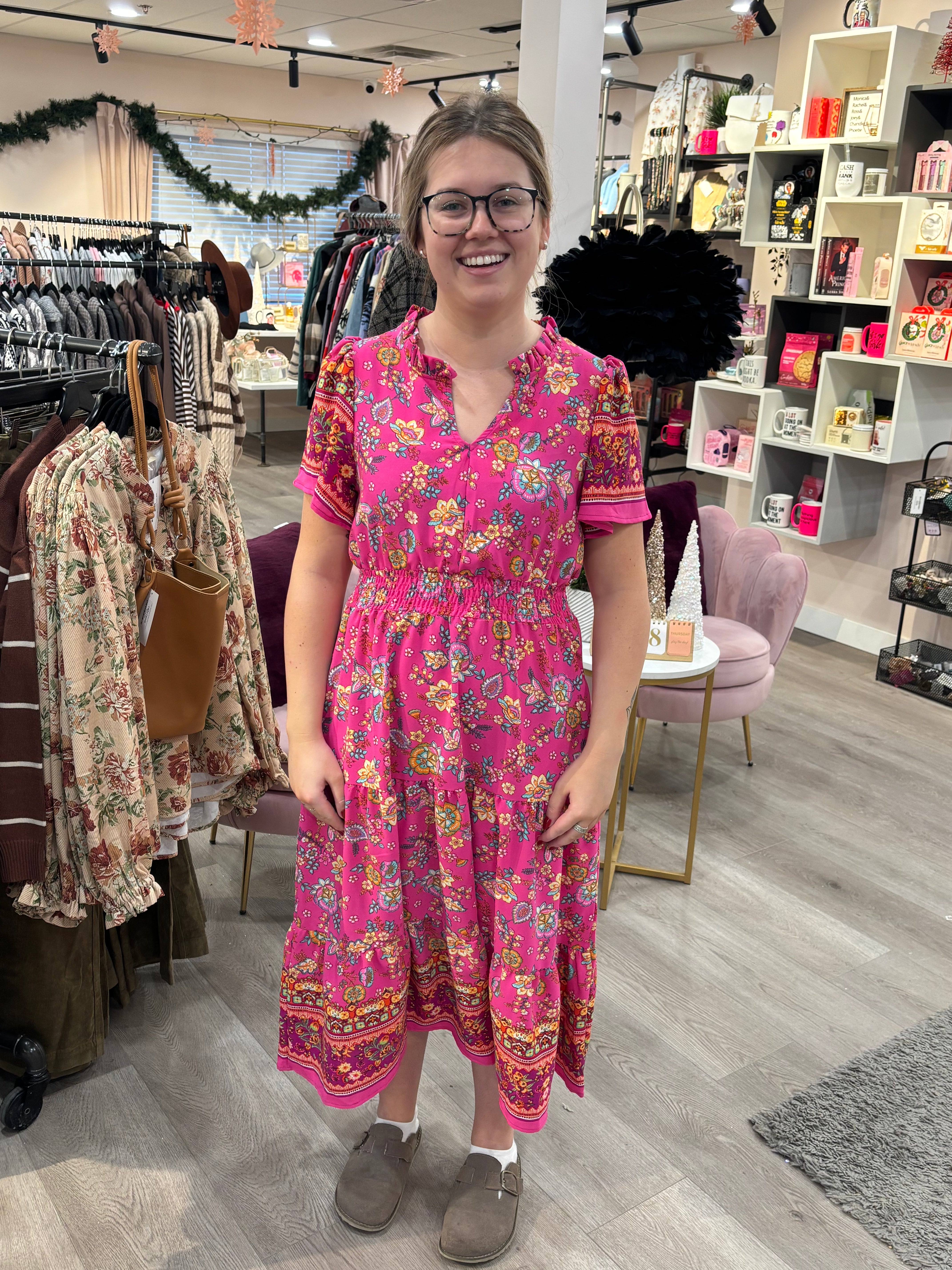 *WAREHOUSE FIND* Cammi Puff Sleeve Fit & Flare Maxi Dress | Fuchsia – Lavender & Lace Boutique