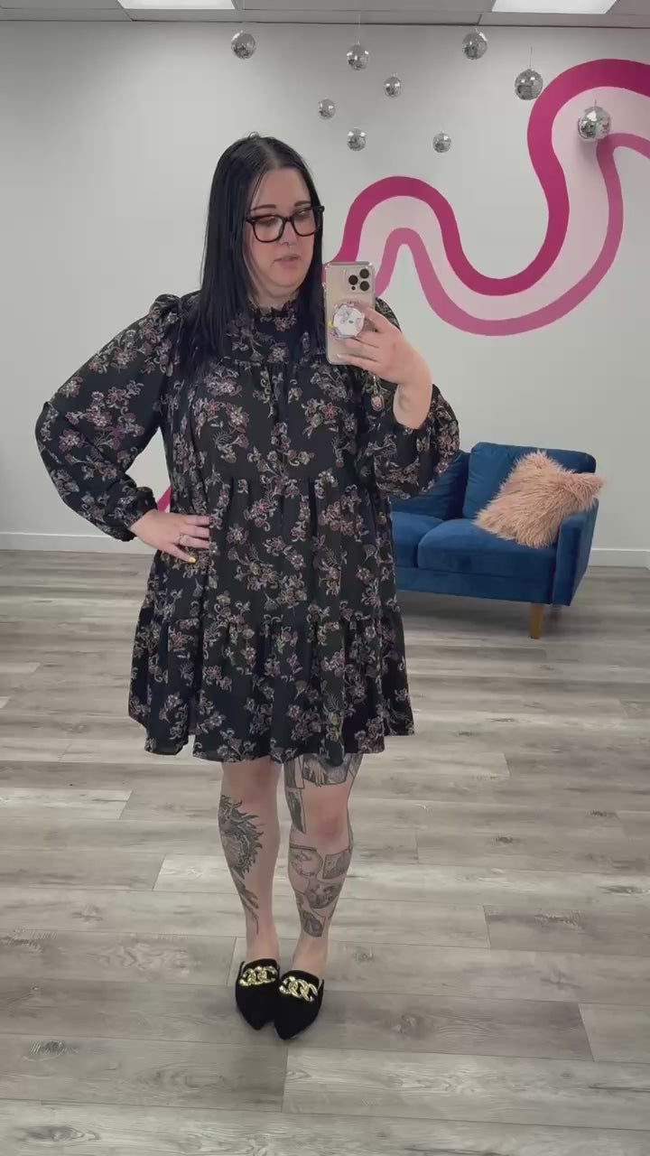 *WAREHOUSE FIND* Makayla Floral Tiered Dress | Black (2X, 3X)