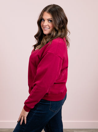 Cassy Soft Funnel Neck Pullover | Burgundy Bloom