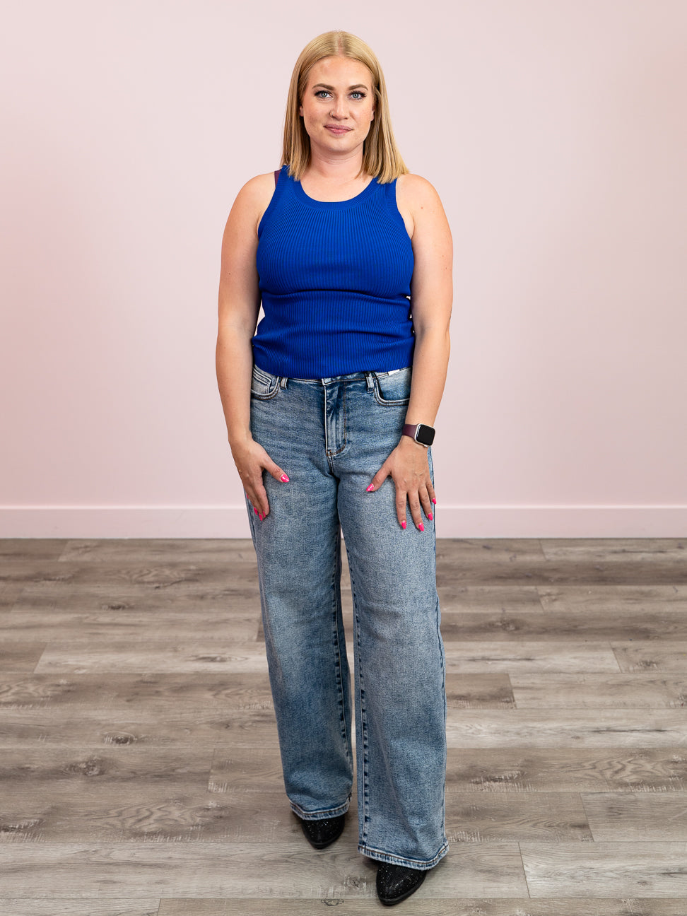 The Malea Knit Tank is your go-to for effortless style and comfort. Featuring a round neck and sleeveless design, this fitted tank is crafted from soft, stretchy rib knit material that moves with you. Perfect for layering or wearing on its own!