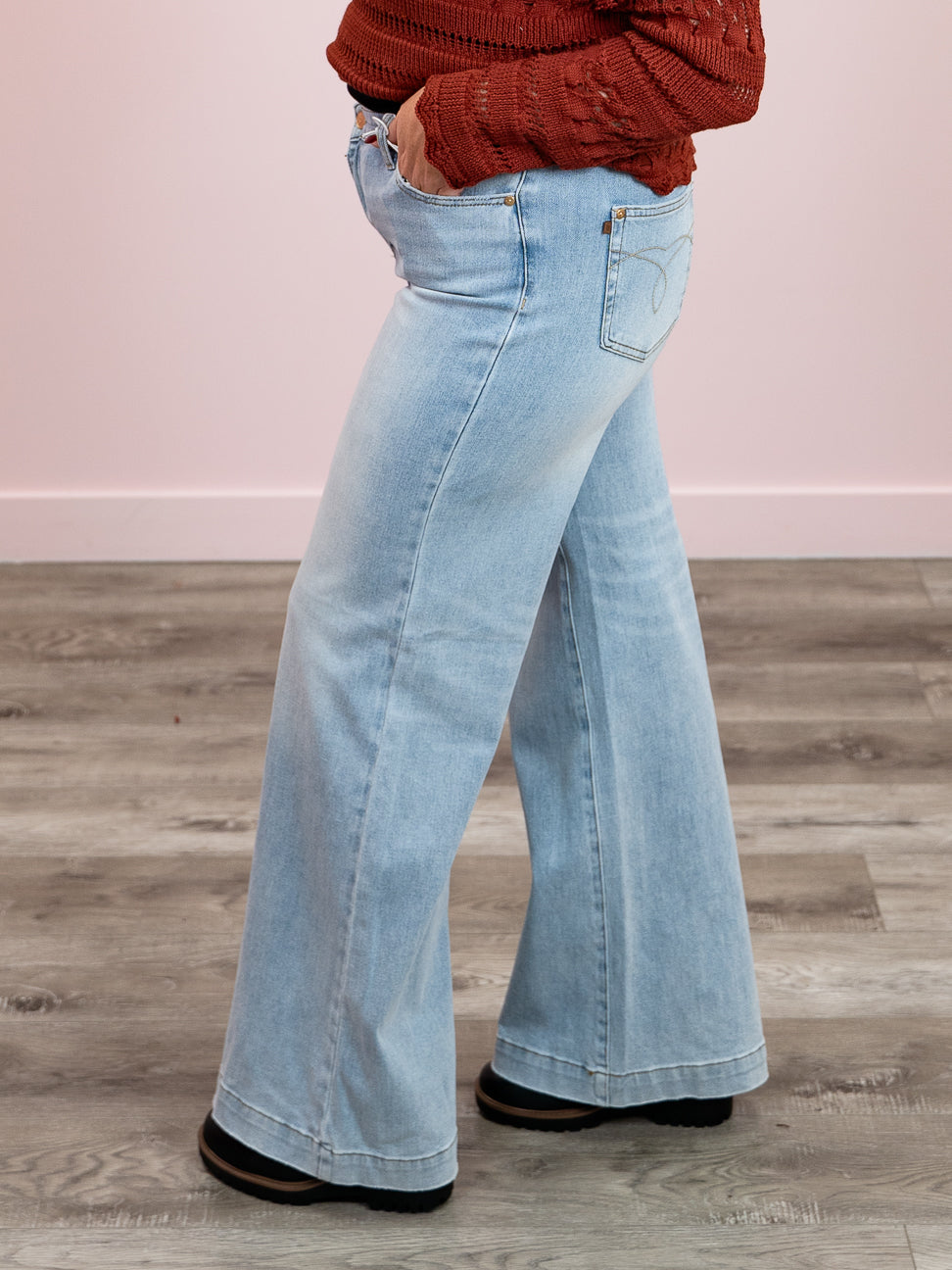 Judy Blue | High Rise | Light Wash Tummy Control Retro Wide Leg | Ethan