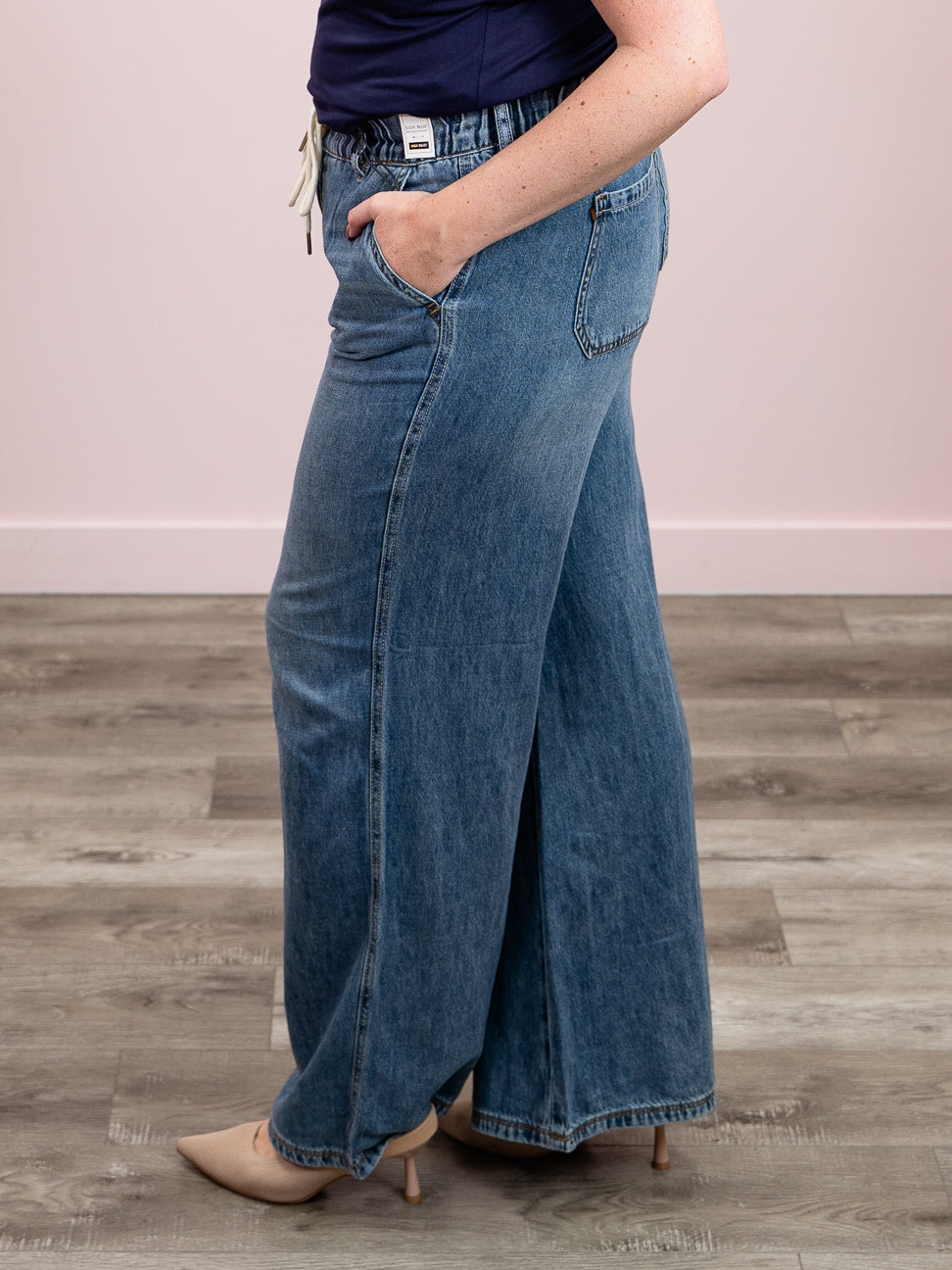 Be the life of the party in these Judy Blue High Rise Rigid Elastic Waist jeans! With a single button closure and drawstring, they offer a comfortable and secure fit. The lightweight material and side pockets add convenience while the slightly flared design adds a touch of fun.