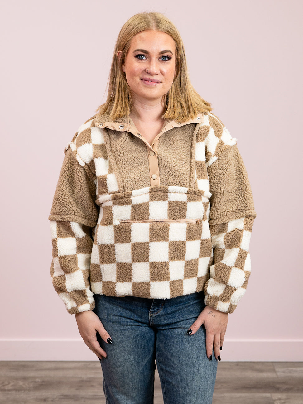 Cozy Haven Fleece Pullover | Taupe Checkered