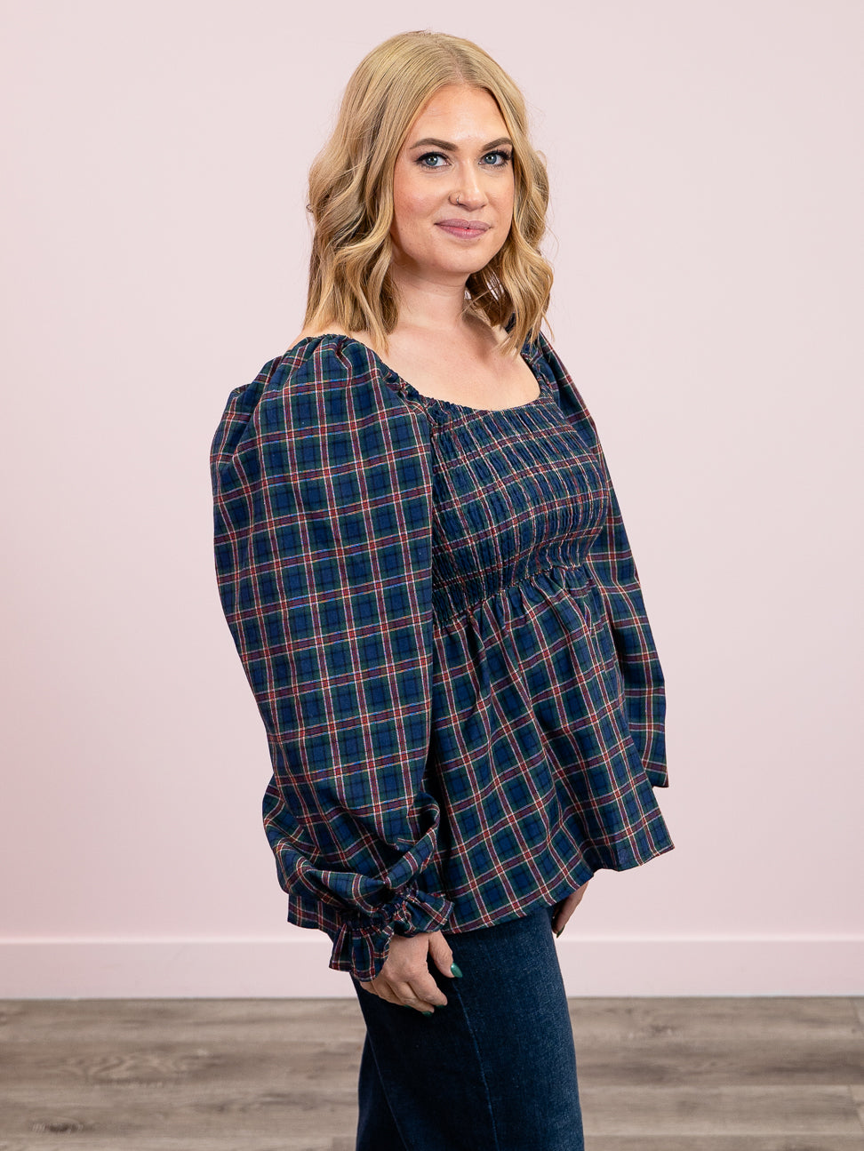 Meet your new go-to top for effortless charm! This babydoll beauty features a sweet square neckline and puffed sleeves that scream vintage-inspired fun. The navy and hunter green plaid keeps things classic while the stretchy upper body hugs you in all the right ways. Whether you're pairing it with jeans or a skirt, this playful piece delivers personality and comfort in one adorable package.