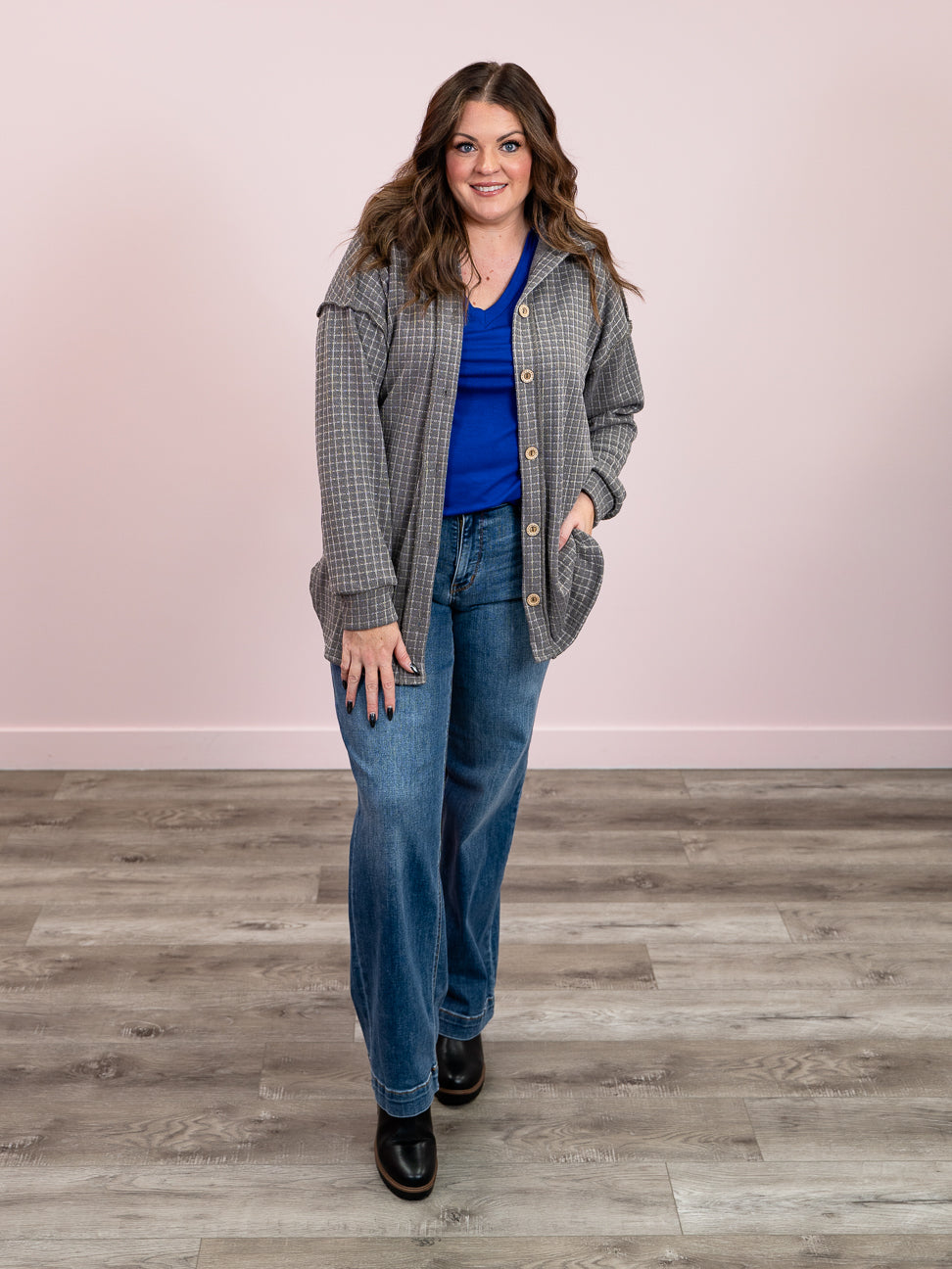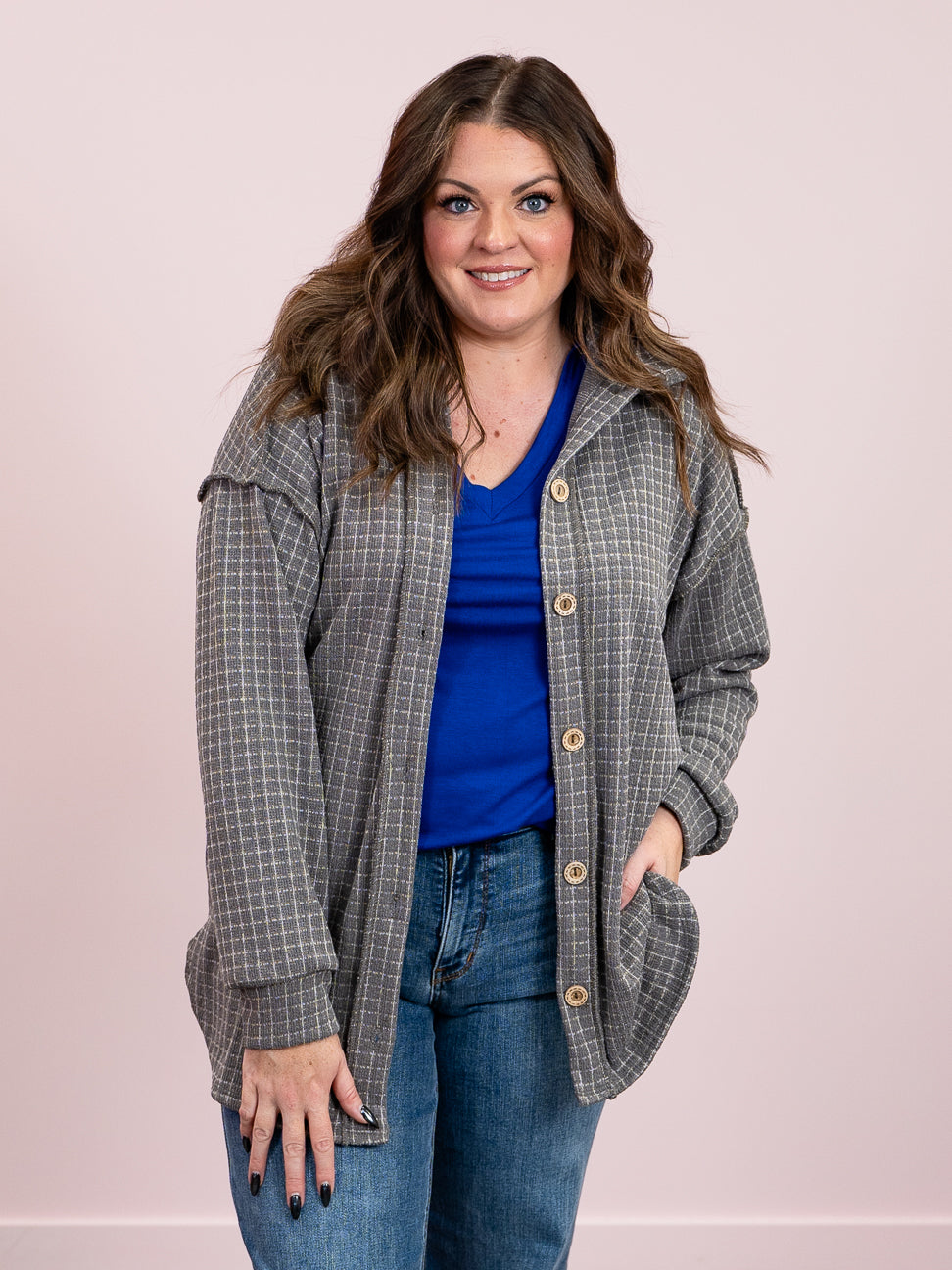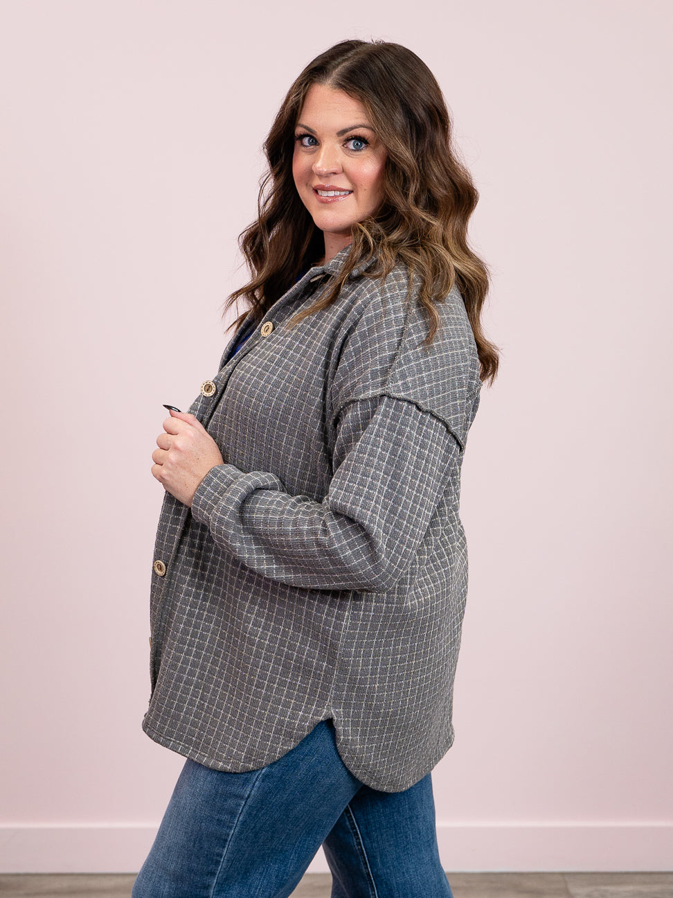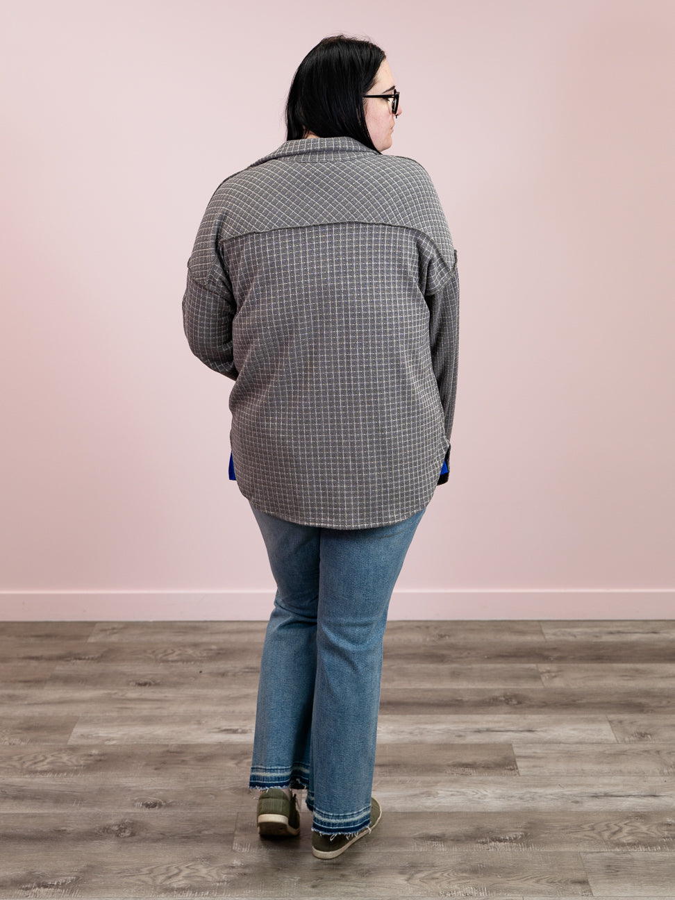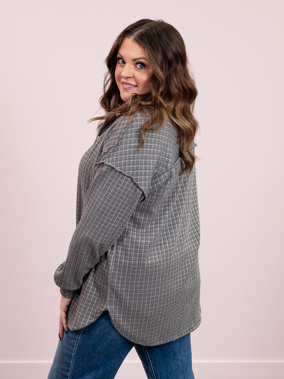 Woodshed Button Down Checker Shacket Top | Dark Grey
