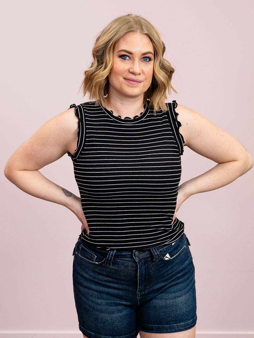 *SUNDAY STEAL* Camie Ribbed Ruffle Stripe Tank Top | Black & White – Lavender & Lace Boutique