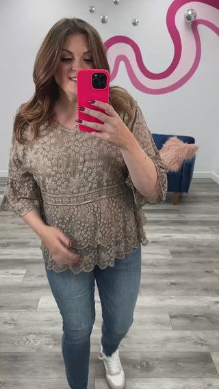 *NEW* Carly Bell Sleeve Lace Blouse | Khaki – Lavender & Lace Boutique