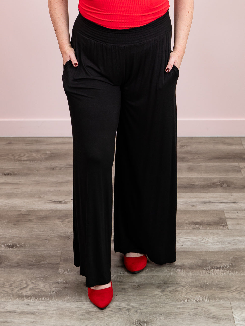 *NEW* Jacklyn Smocked Waist Wide Leg Palazzo Pants | Black – Lavender & Lace Boutique