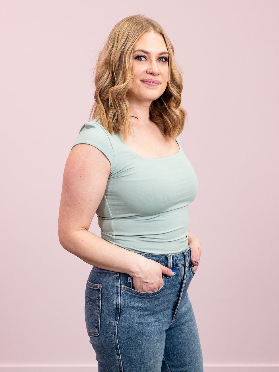 Introducing the Second Skin Tiara Cap Sleeve Top! This buttery soft and stretchy top will hug your body like a second skin. With a rounded square neck and full back design, along with cap sleeves, this top is both comfortable and stylish. Get ready to feel and look great in this top!