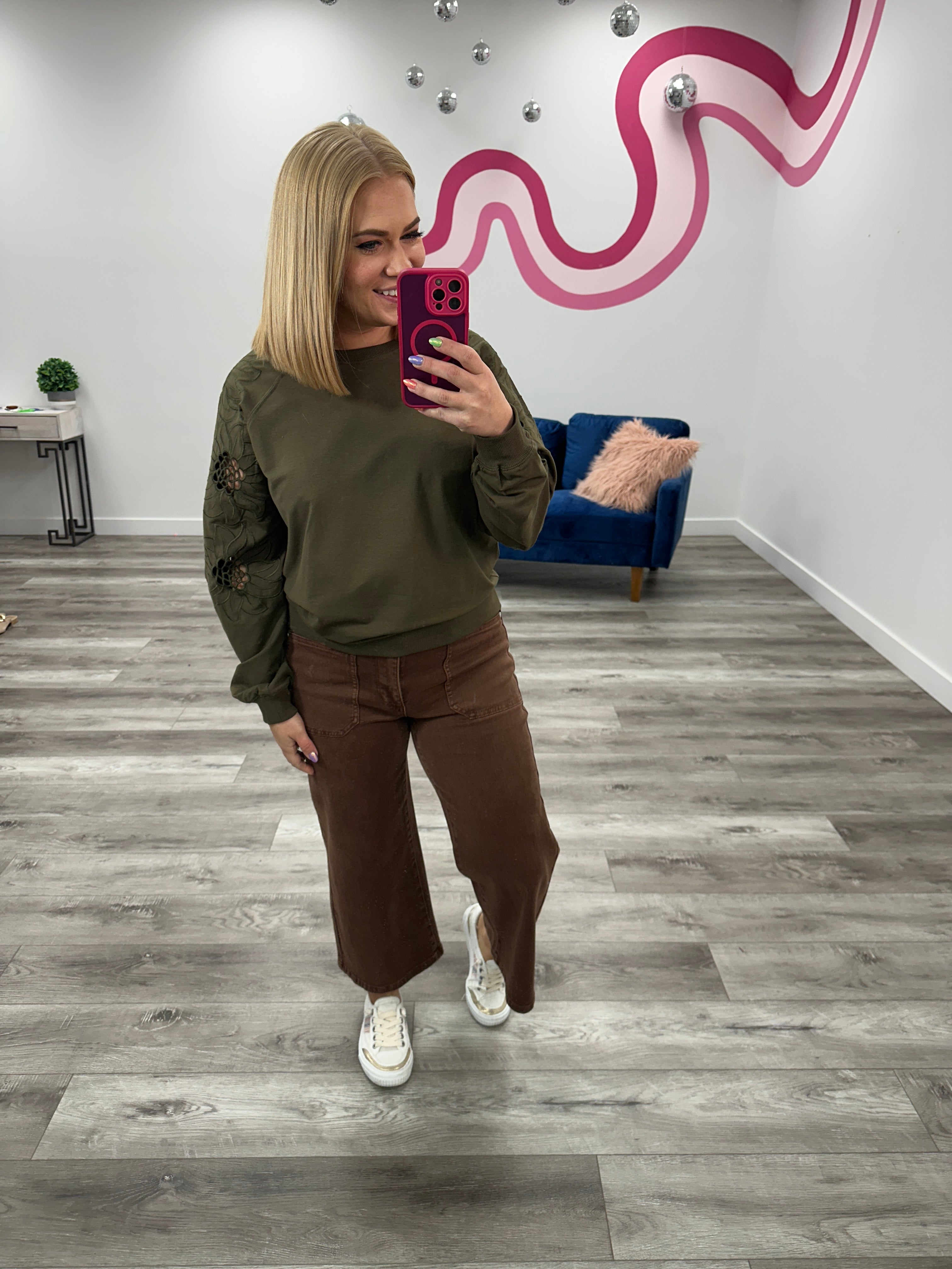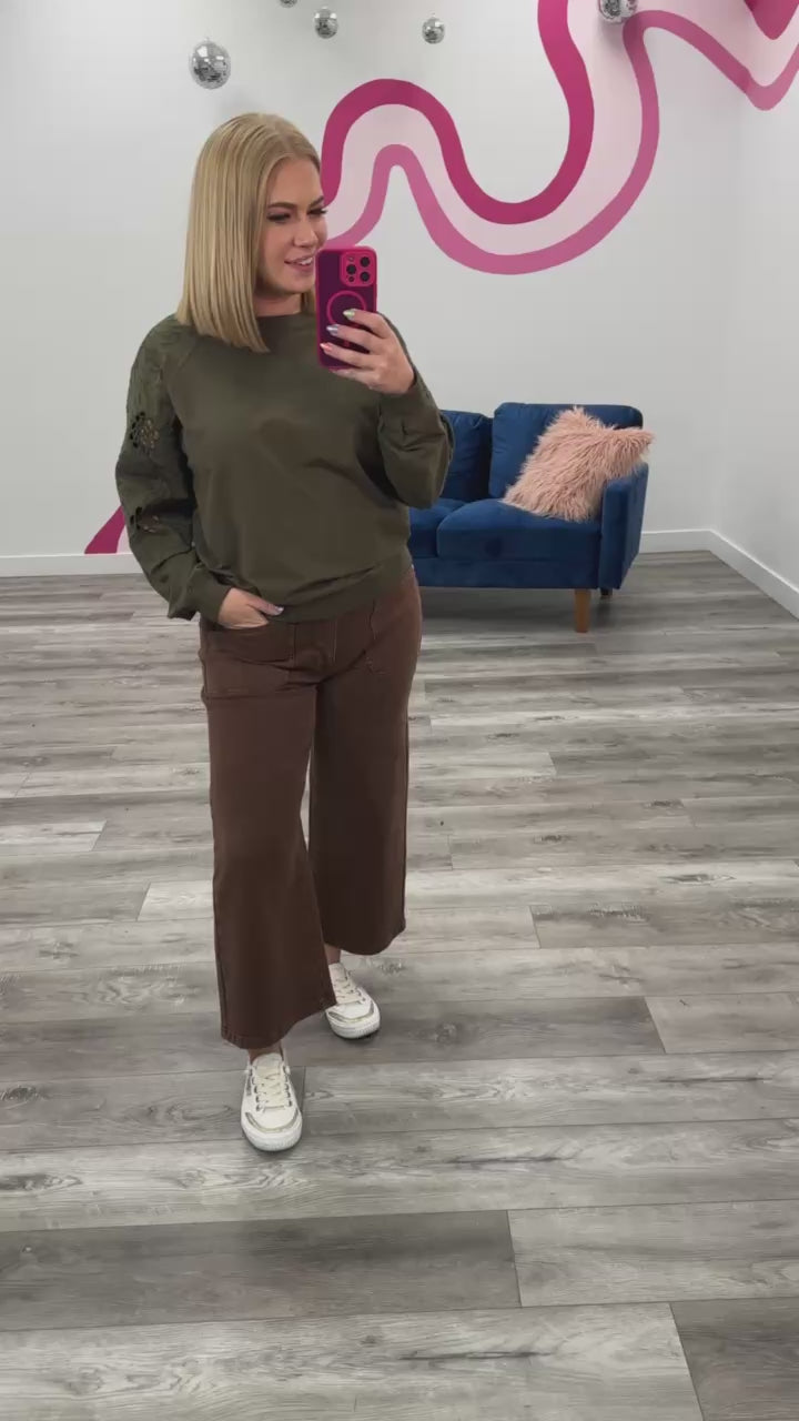 *FINAL SALE* Sweet Surrender Embroidered Pullover | Olive – Lavender & Lace Boutique