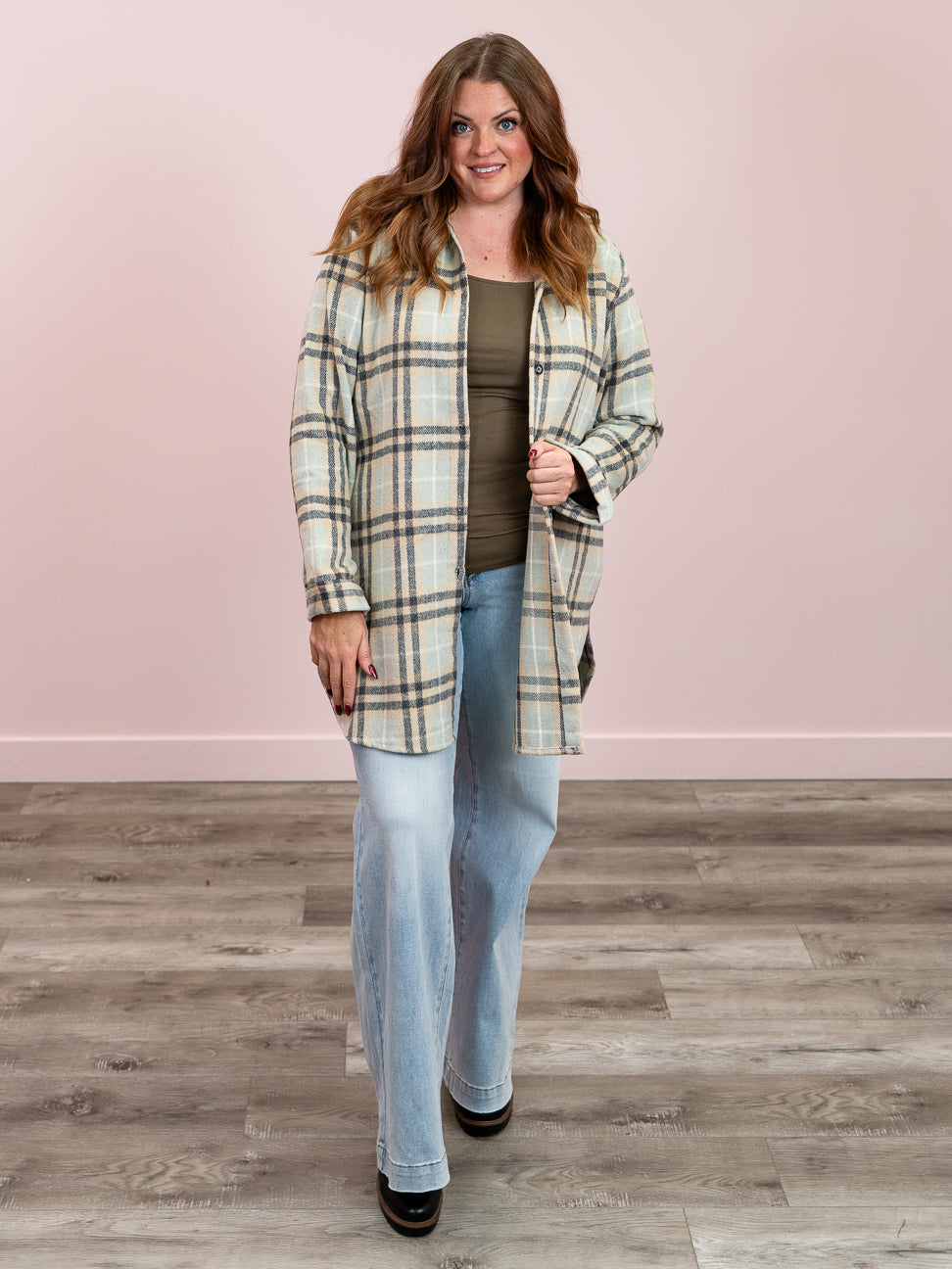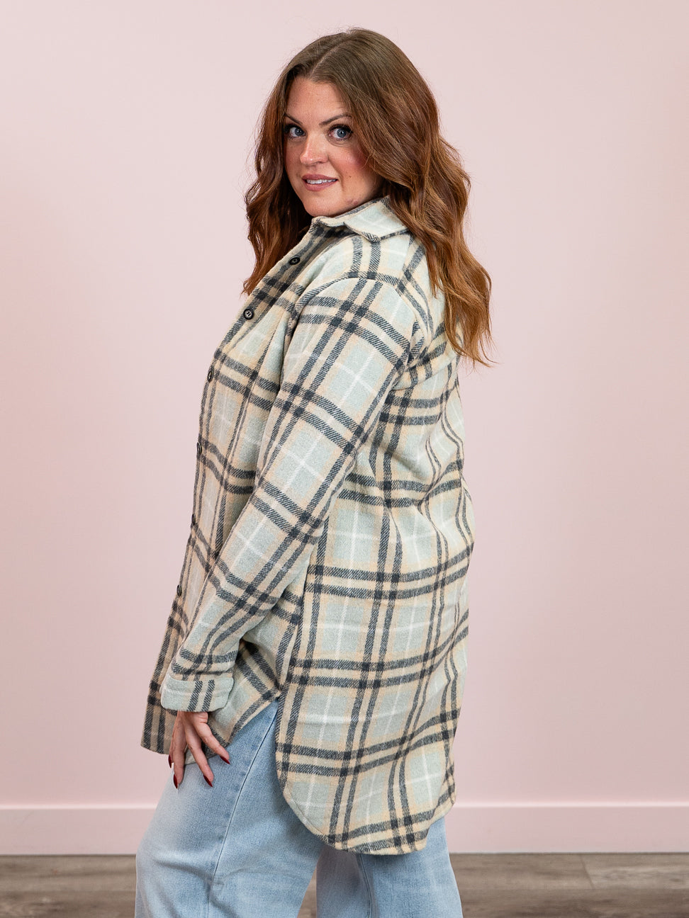 The Barrett Flannel Shacket combines the warmth of flannel with the versatility of a jacket. Featuring a classic collar, button-front closure, handy pockets, and a stylish round scoop hem, it’s perfect for layering on cool days.