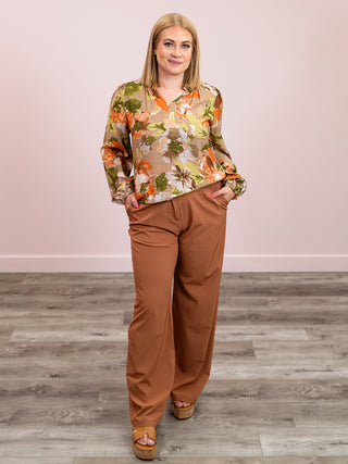 *FINAL SALE* Harvest Hues Smocked Satin Print Pant | Taupe