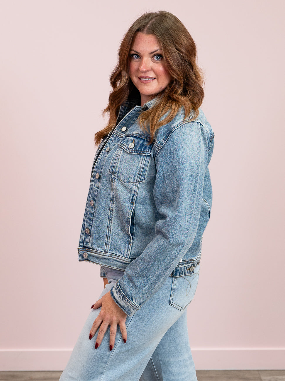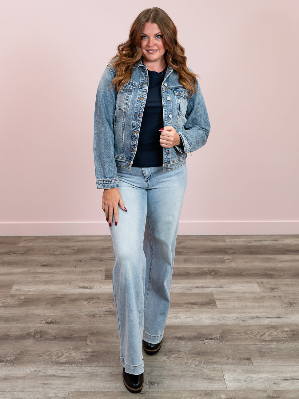 The Judy Blue Maxx Jacket is a timeless denim layer with a collar, front button closure, and both chest and side pockets for function and style. Finished in a versatile mid wash with a relaxed fit, it’s perfect for effortless, everyday layering.