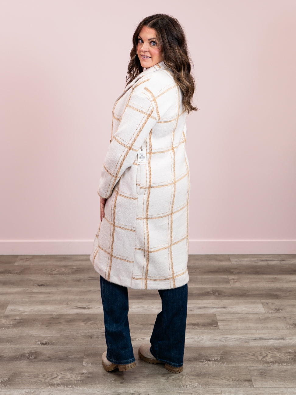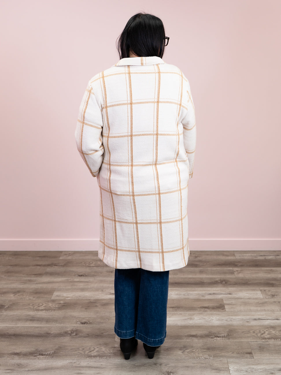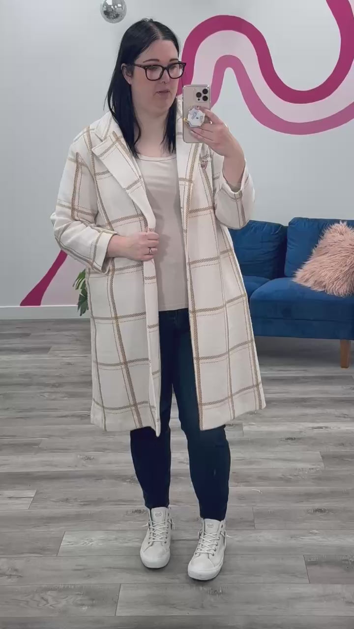 DEX | Ellis Longline Coat | Cream & Mocha Windowpane