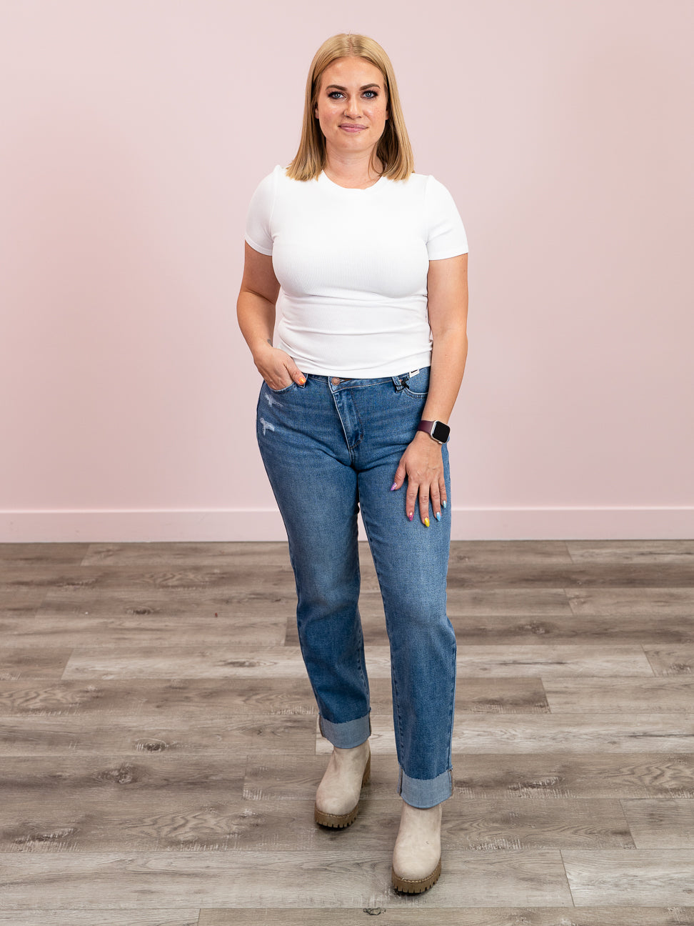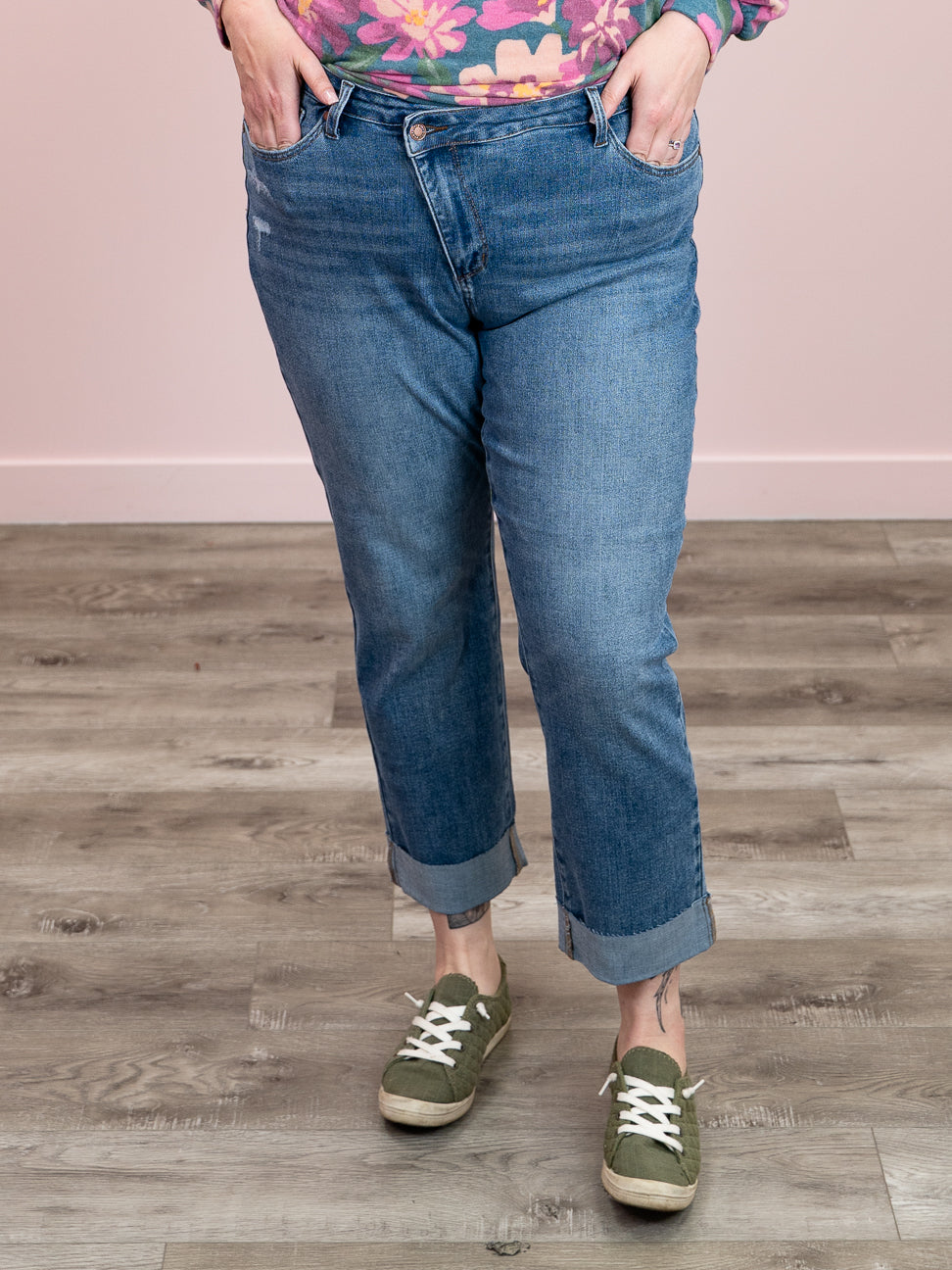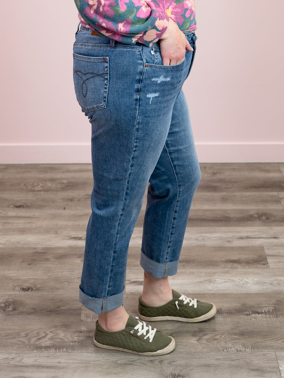 Judy Blue | High Rise | Mid Wash Cuffed Boyfriend | Colt – Lavender & Lace Boutique