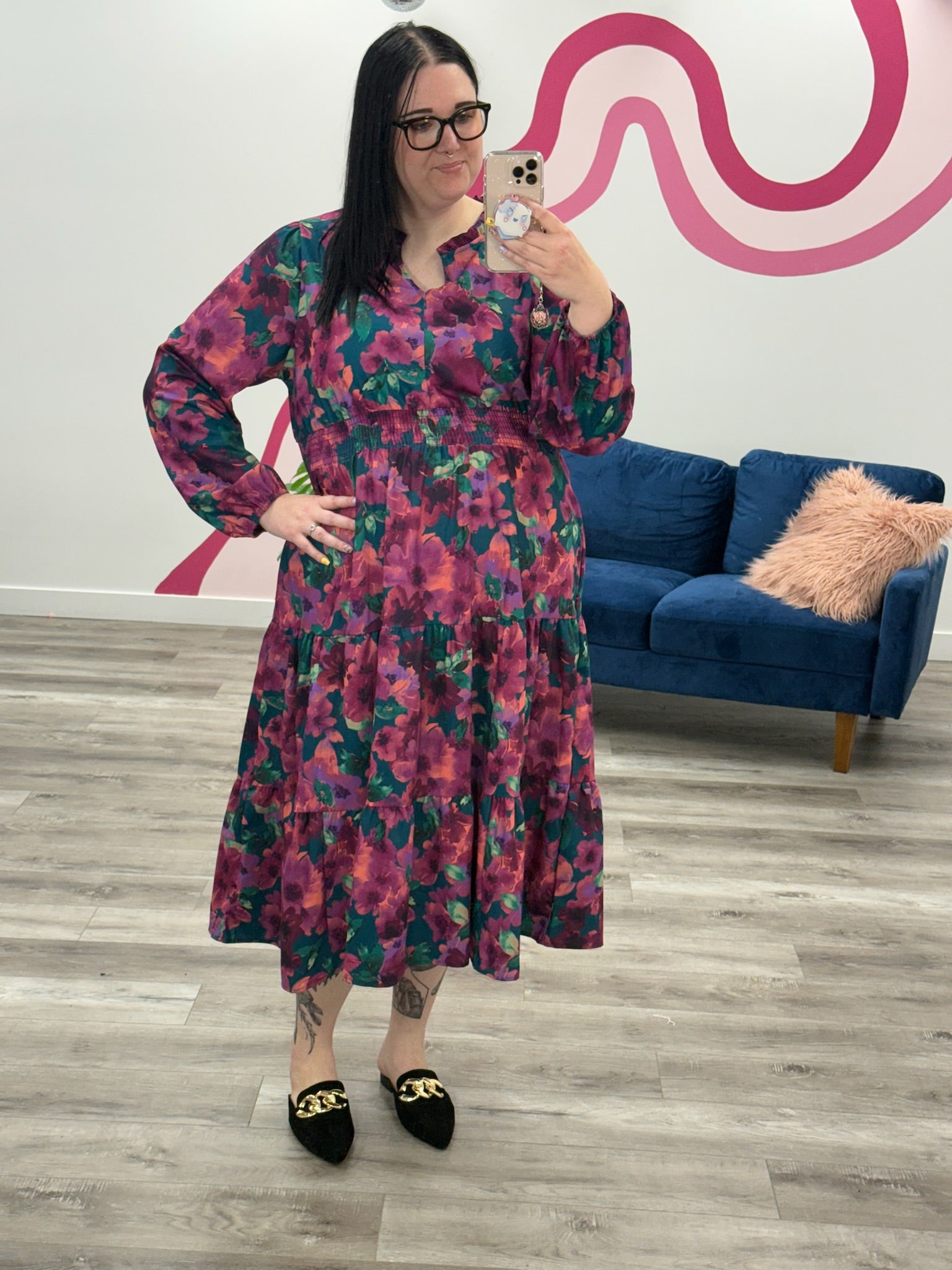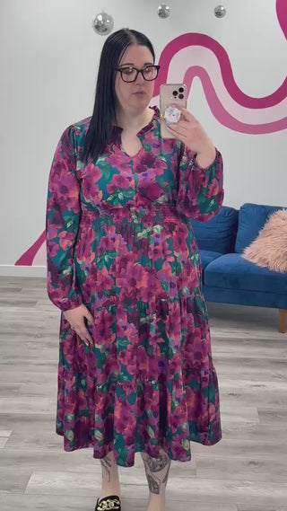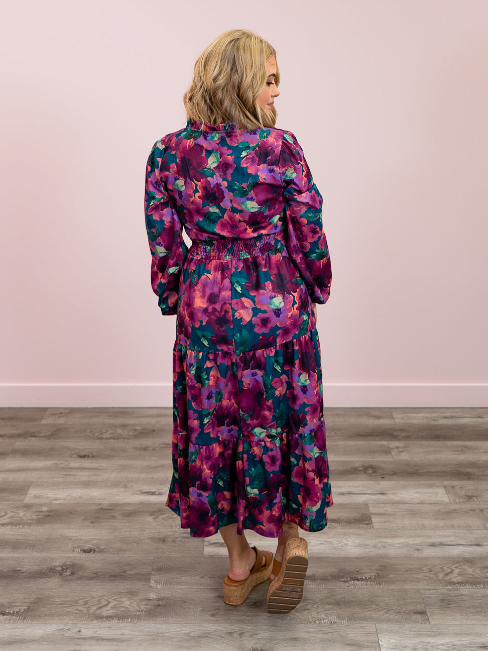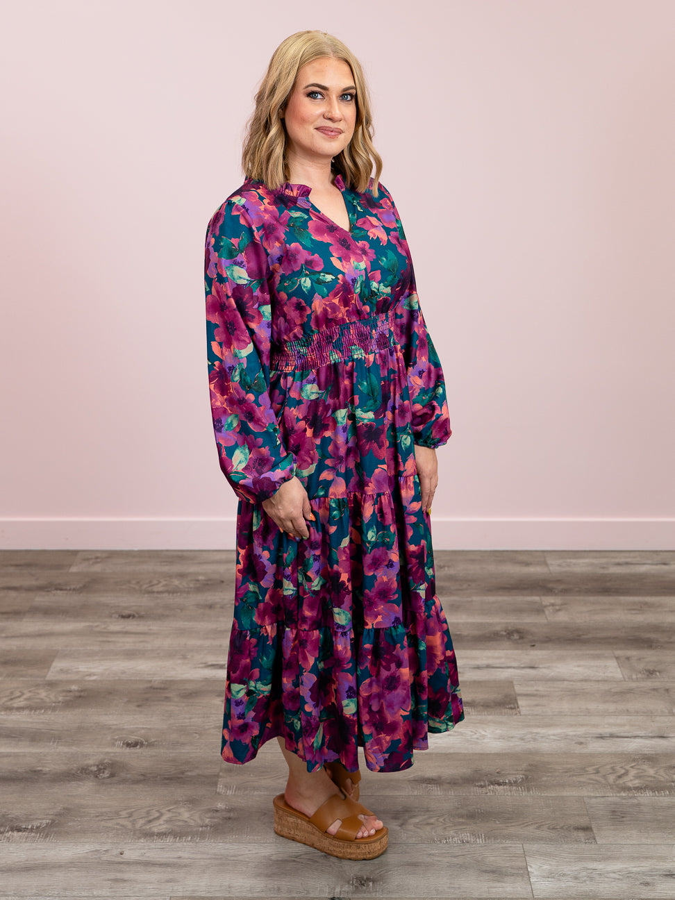 Karina Floral Maxi Dress | Hunter Green & Magenta