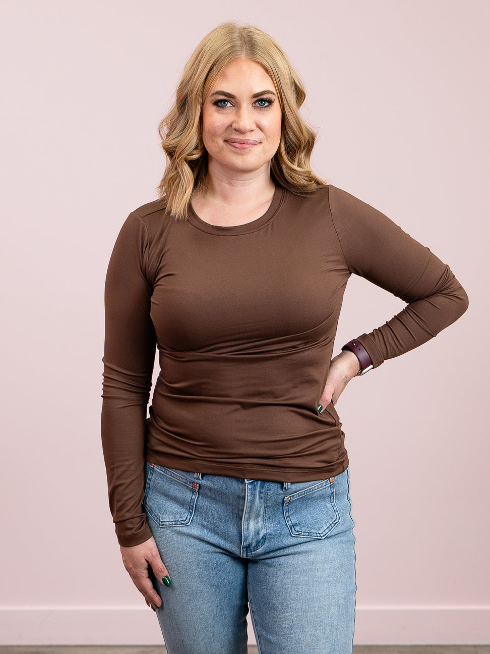 *4PM DEAL* Kenzie Long Sleeve Round Neck Tee | Brown