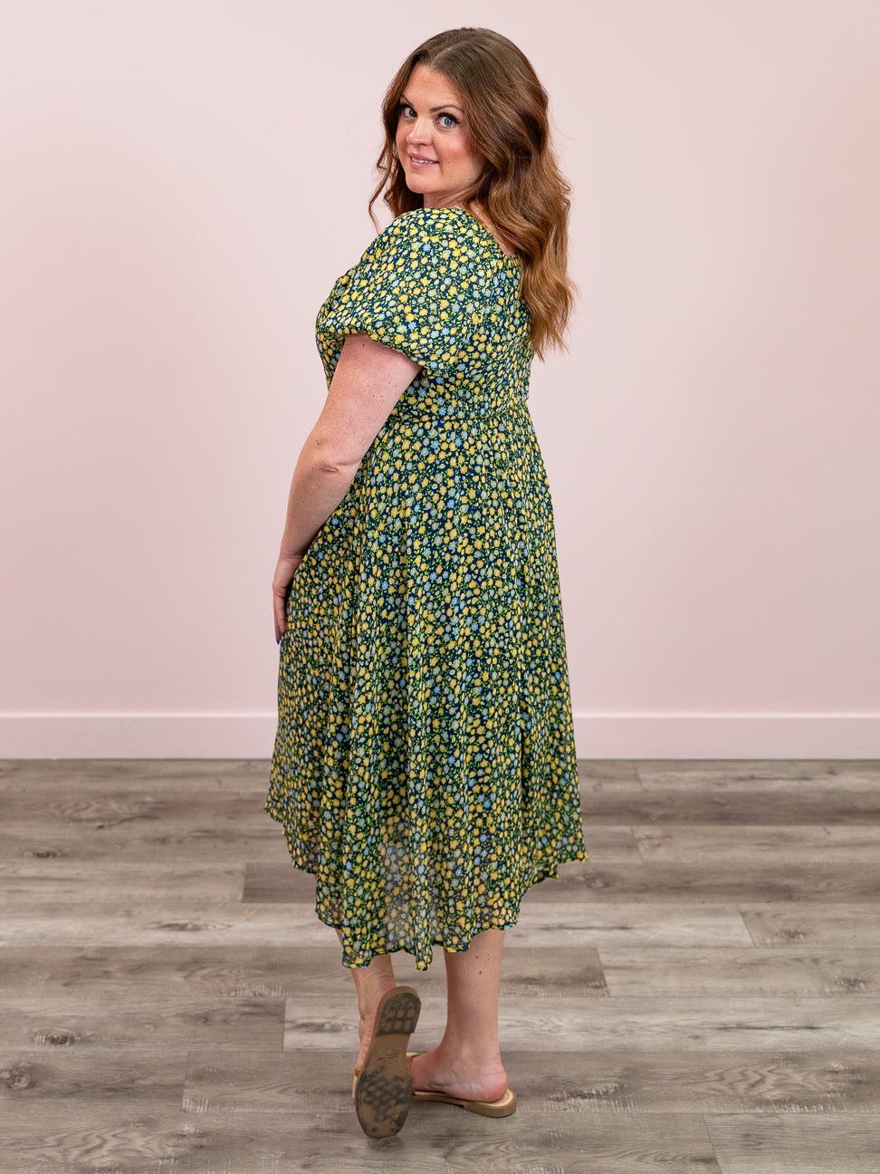 The Mallory Floral Midi Dress is effortlessly elegant with its flattering V-neckline, short puff sleeves, and a comfortable elastic waist. Fully lined and designed in a beautiful midi length, it showcases a gorgeous floral print that's perfect for any occasion.