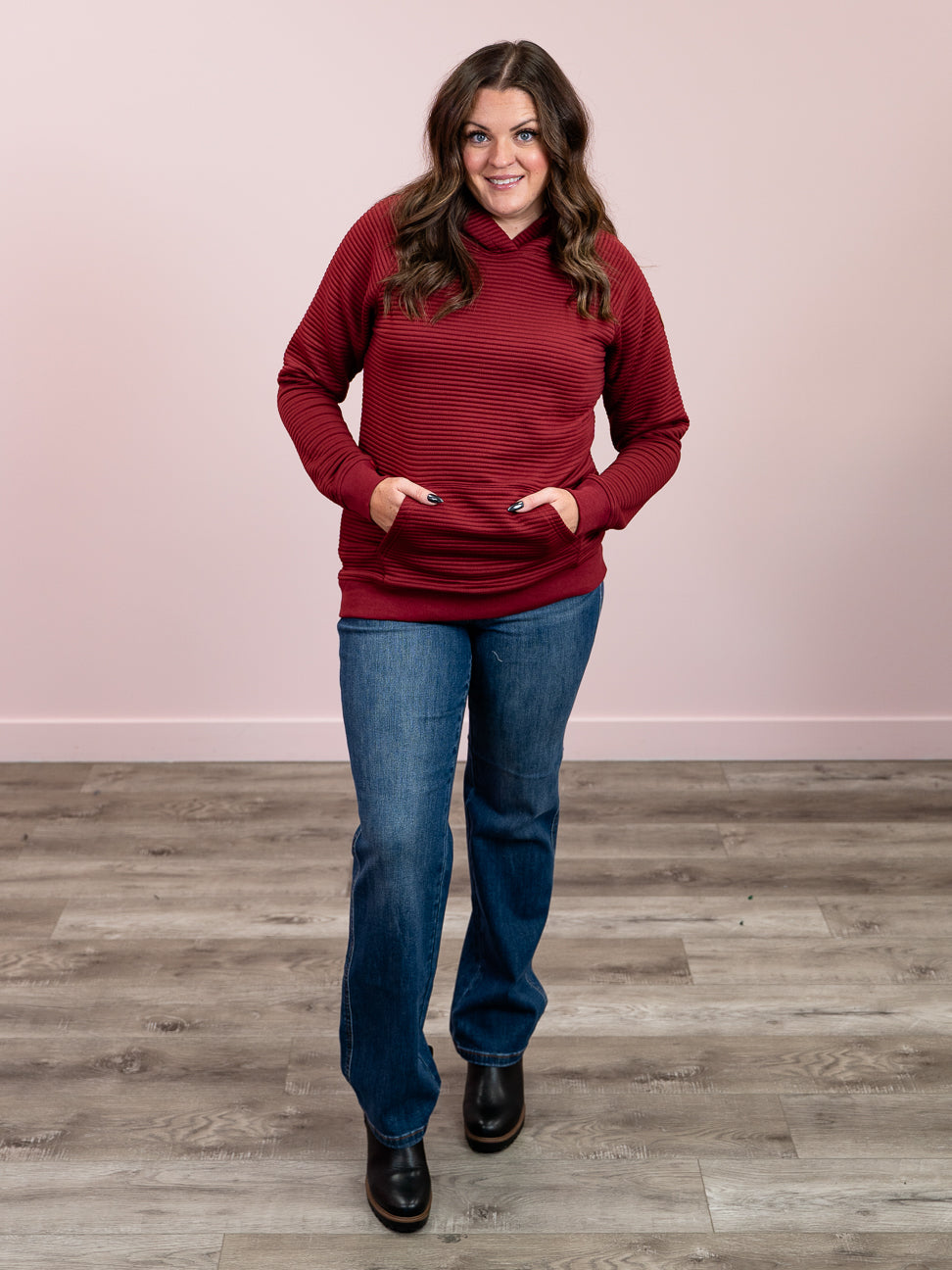 Stay cozy and stylish with the Tatum Textured Pullover Hoodie. The perfect addition to your wardrobe, this hoodie features a kangaroo pocket for convenience and a fun pullover design.