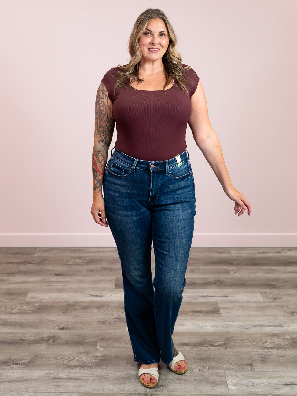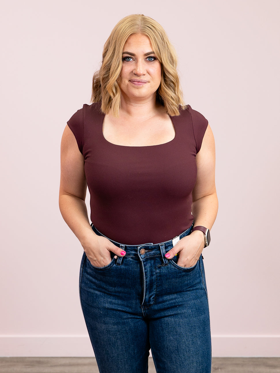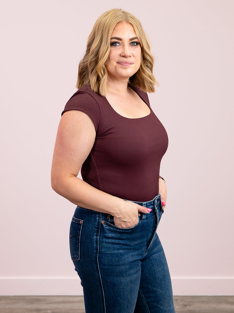 Second Skin | Tiara Rib Rounded Square Neck Bodysuit | Prune