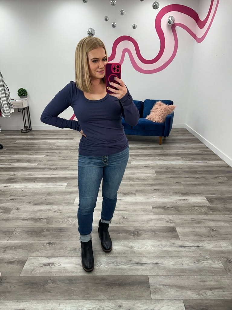 The Kenley Ribbed Long Sleeve Top is effortlessly chic and comfortable. Featuring a scoop neck and ruched sides, this fitted top is made from soft, stretchy ribbed material that hugs your shape in all the right places. Perfect for layering or wearing on its own.