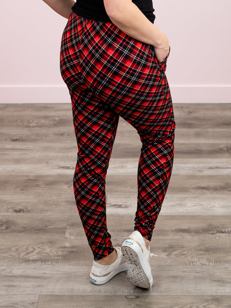 *DOOR CRASHERS* Lux Joggers | Black & Red Mini Plaid