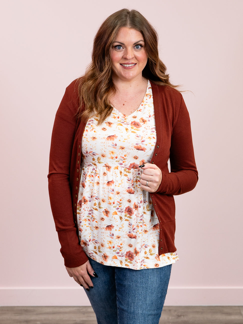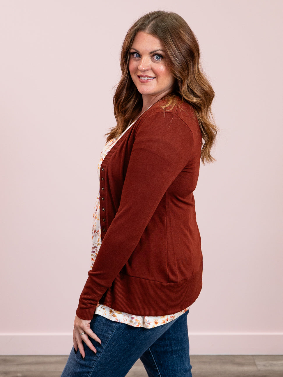 *11AM DEAL* Oh Snap Cardigan | Dark Rust