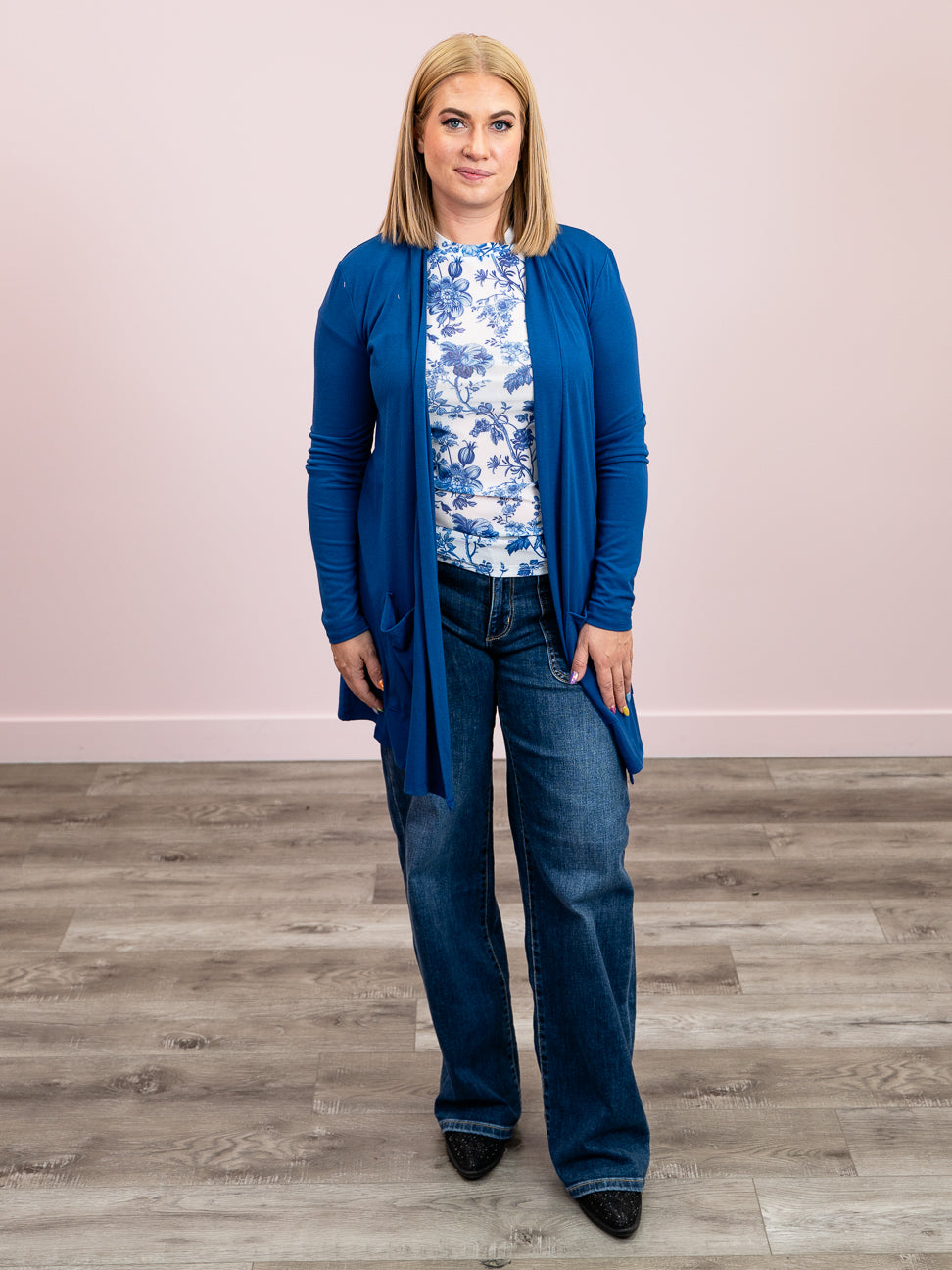 Be ready for whatever comes your way with the Staple Pocket Cardigan! This cardigan features an open front, pockets, and a stretchy fabric that is luxuriously soft to the touch. Perfect for everyday wear, this great basic is the essential cardigan for any wardrobe.