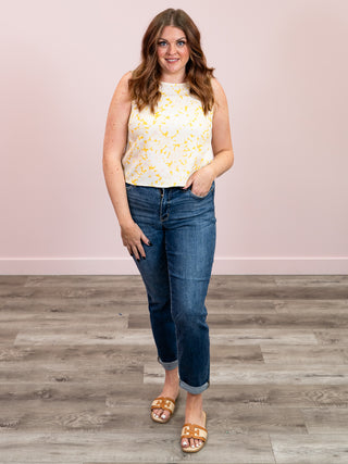*FINAL SALE* Honey Blossom Sleeveless Linen Blouse | Mustard Multi