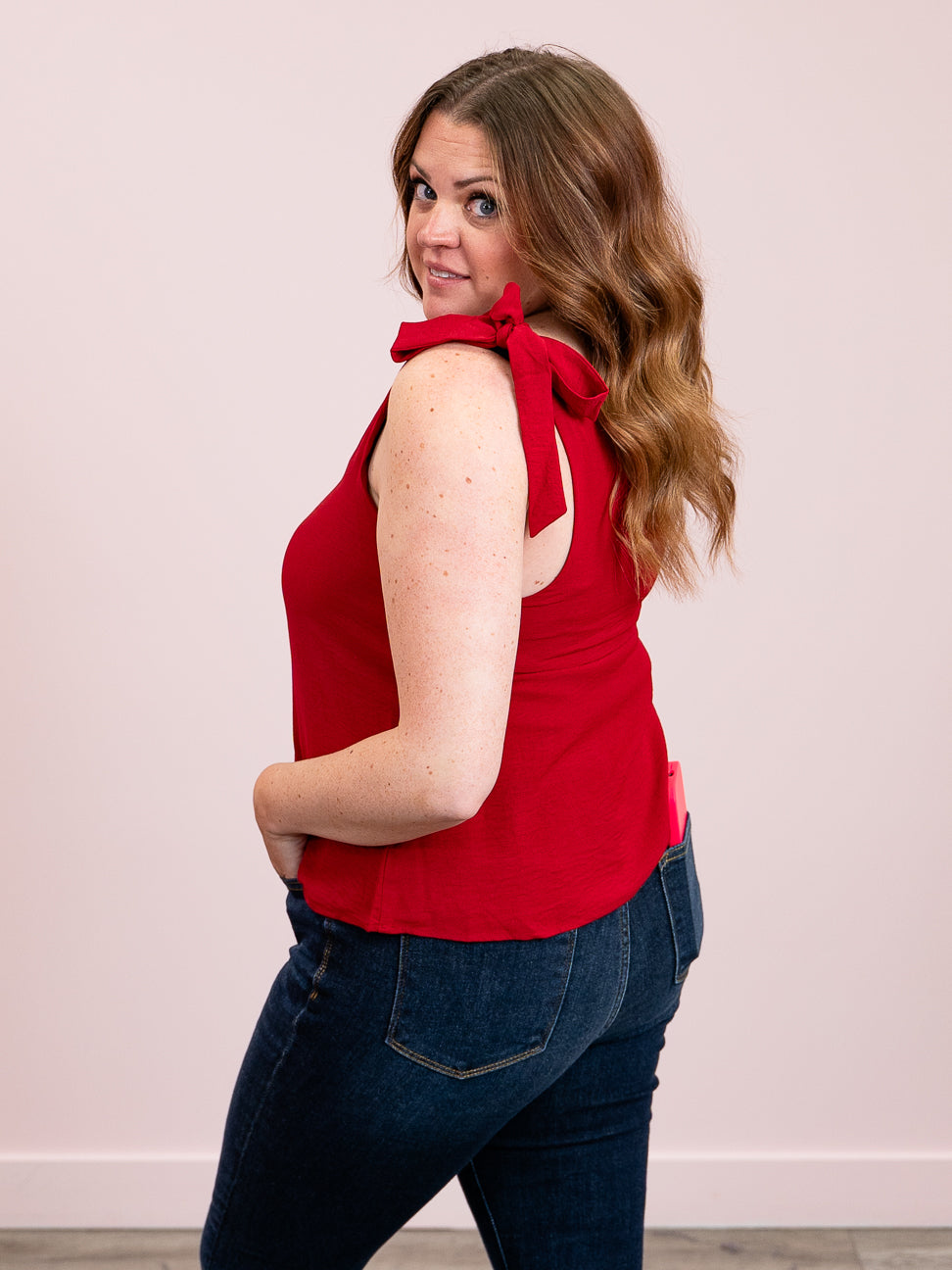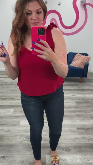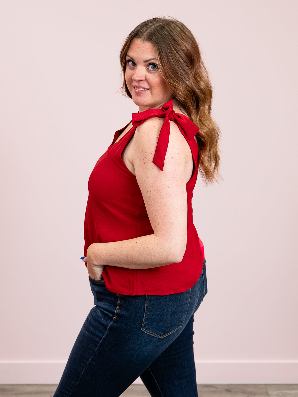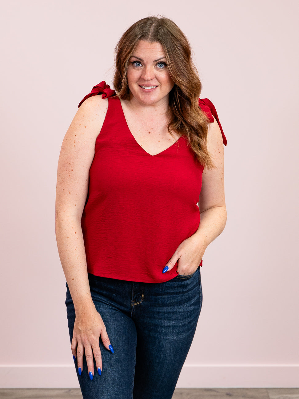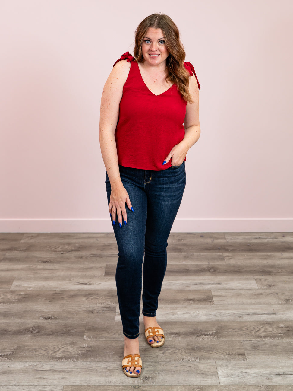 The Kendall Tie Strap Tank features a flattering V-neck and adjustable tie straps for a customizable fit. Made from lightweight material with a relaxed fit and a round hem, it’s perfect for effortless, breezy style.
