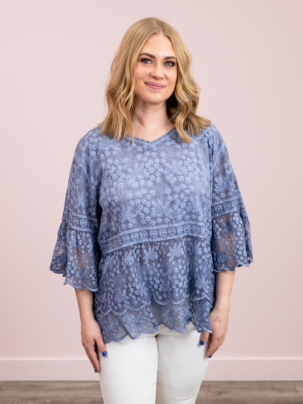 *NEW* Carly Bell Sleeve Lace Blouse | Blue – Lavender & Lace Boutique